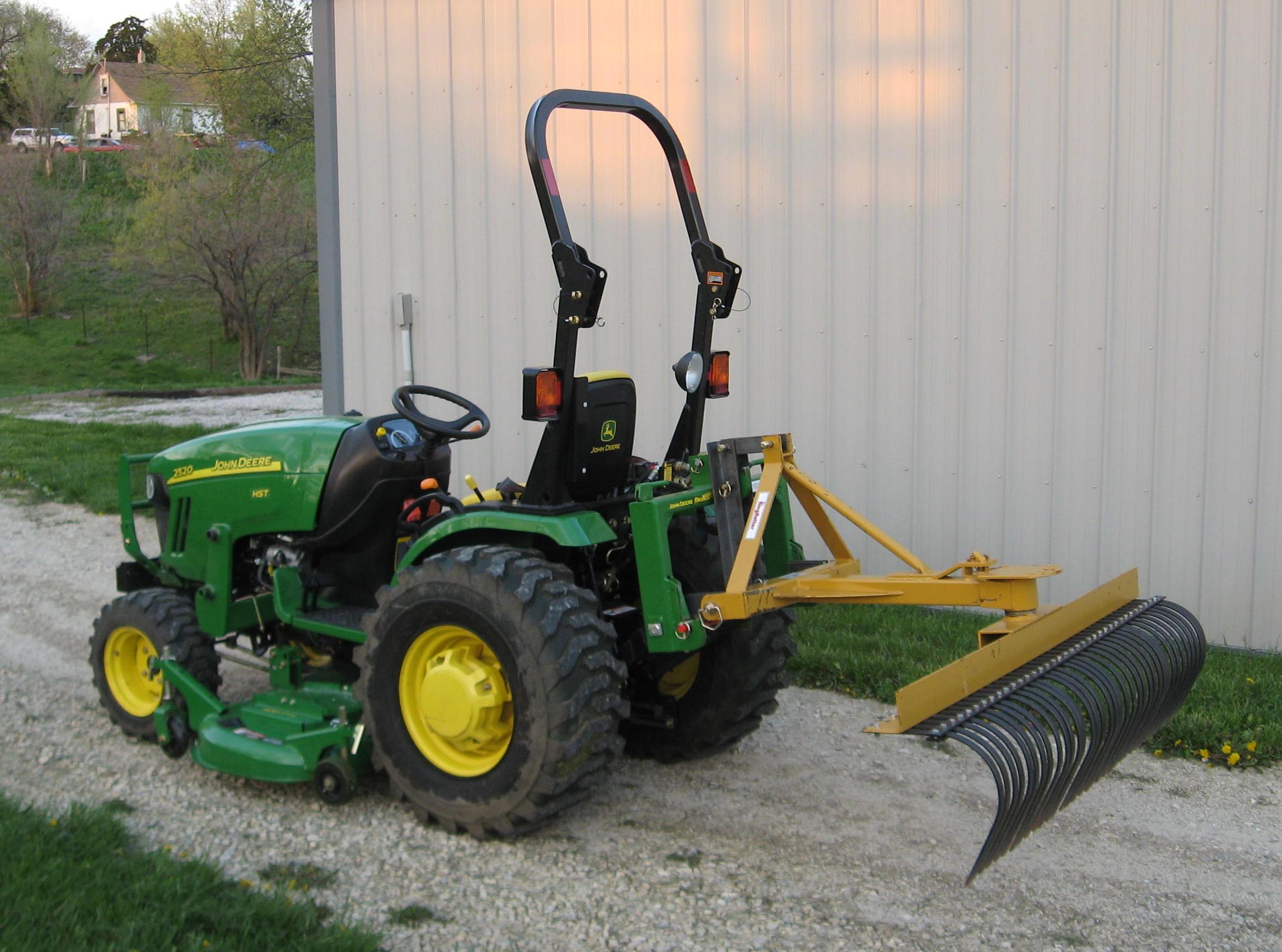 For me, I was fixing up my palletforks that were going to be scrapped and had a hole drilled in one of the forks. When I hauled it up to my dads, I moved the fork in as far as I could and put a ball in the hole. Then I backed the 3720 Deere up to the 4 horse trailer and towed it around to the back of the barn. My step mom was working with a horse and looked up to see me pulling the horse trailer with the tractor. Then I hauled the cenent mixer around the back as well.