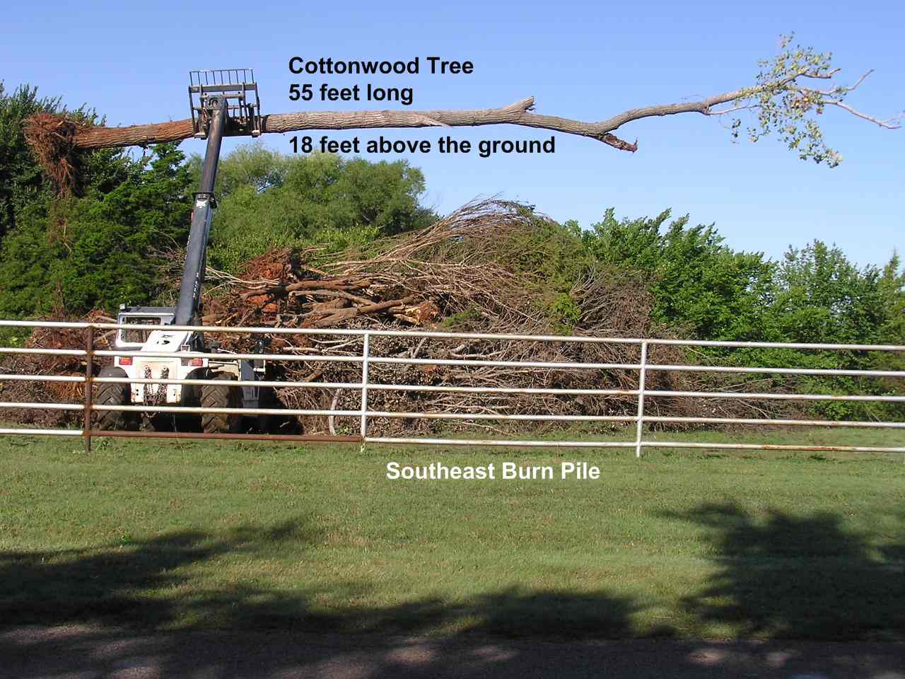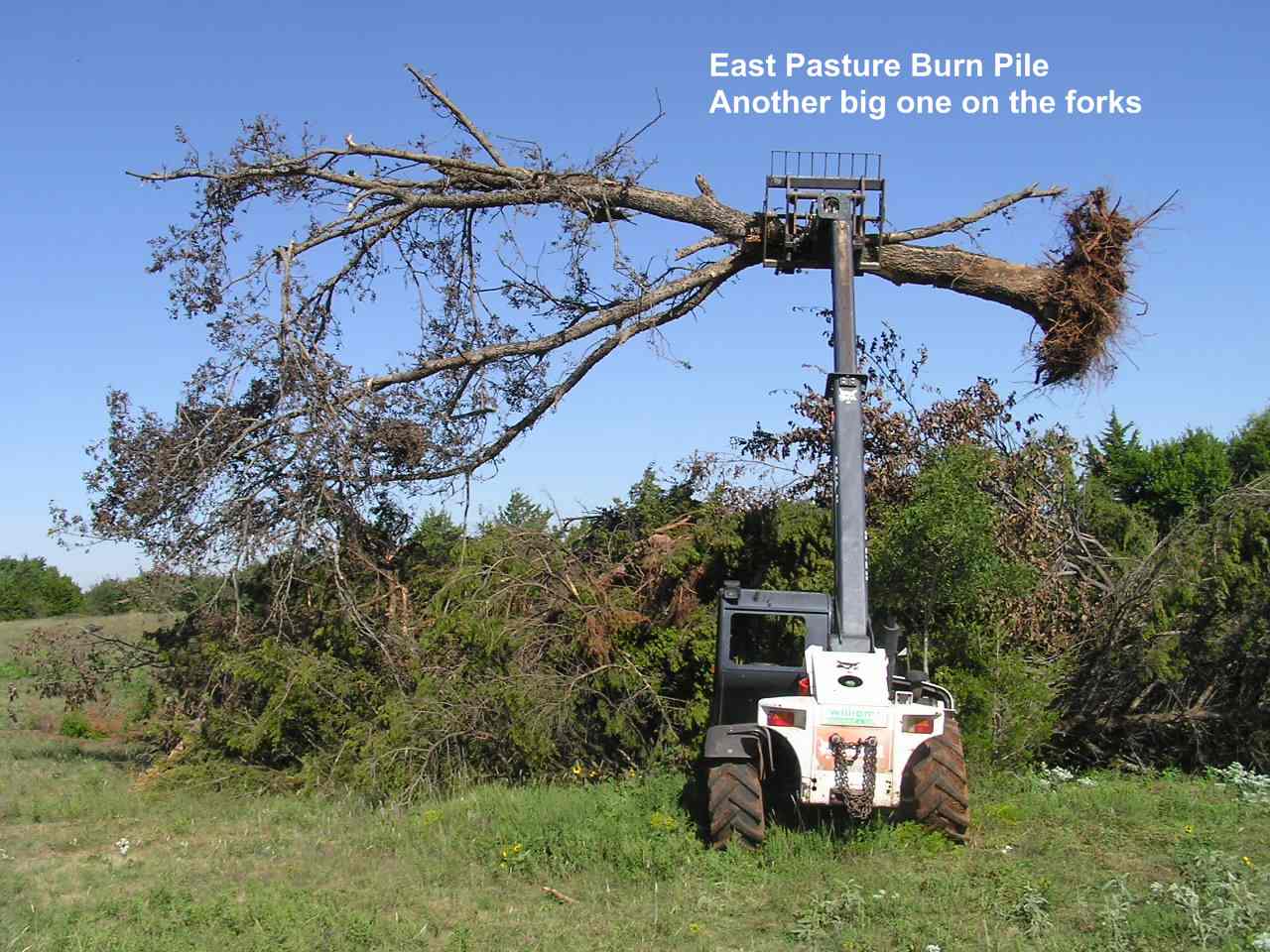 Stacking trees with the forks. The trees had been pushed over by a dozer.