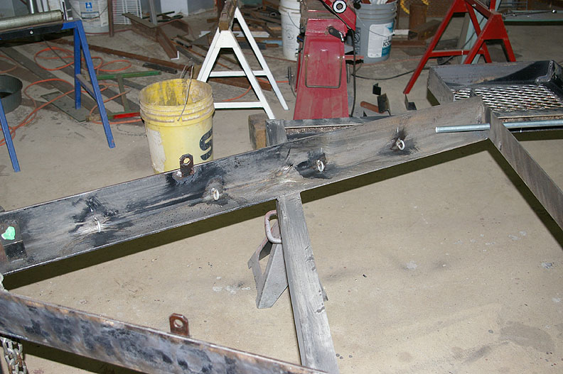 The tarp tie down bar was welded on. This will be used to tie the tarp down over the sheet metal and the spare tire mount bolt was also installed. 30Apr16_49.jpg