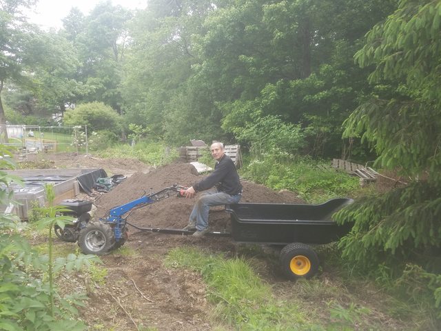 The trailer's come in real handy. My brush pile tends to be far away from wherever I'm working so trips with the wheelbarrow really add up. I can stack a lot more loose brush on top, and hay stacks nicely. My land is really soft and muddy so I've learned my lesson and don't drive my truck around anymore (plus the low loading height is much nicer than the back of a pickup). I've been thinking of converting on old metal horse gate into a ramp so that I can winch a couple implements onto it if I need to transport a few things.
