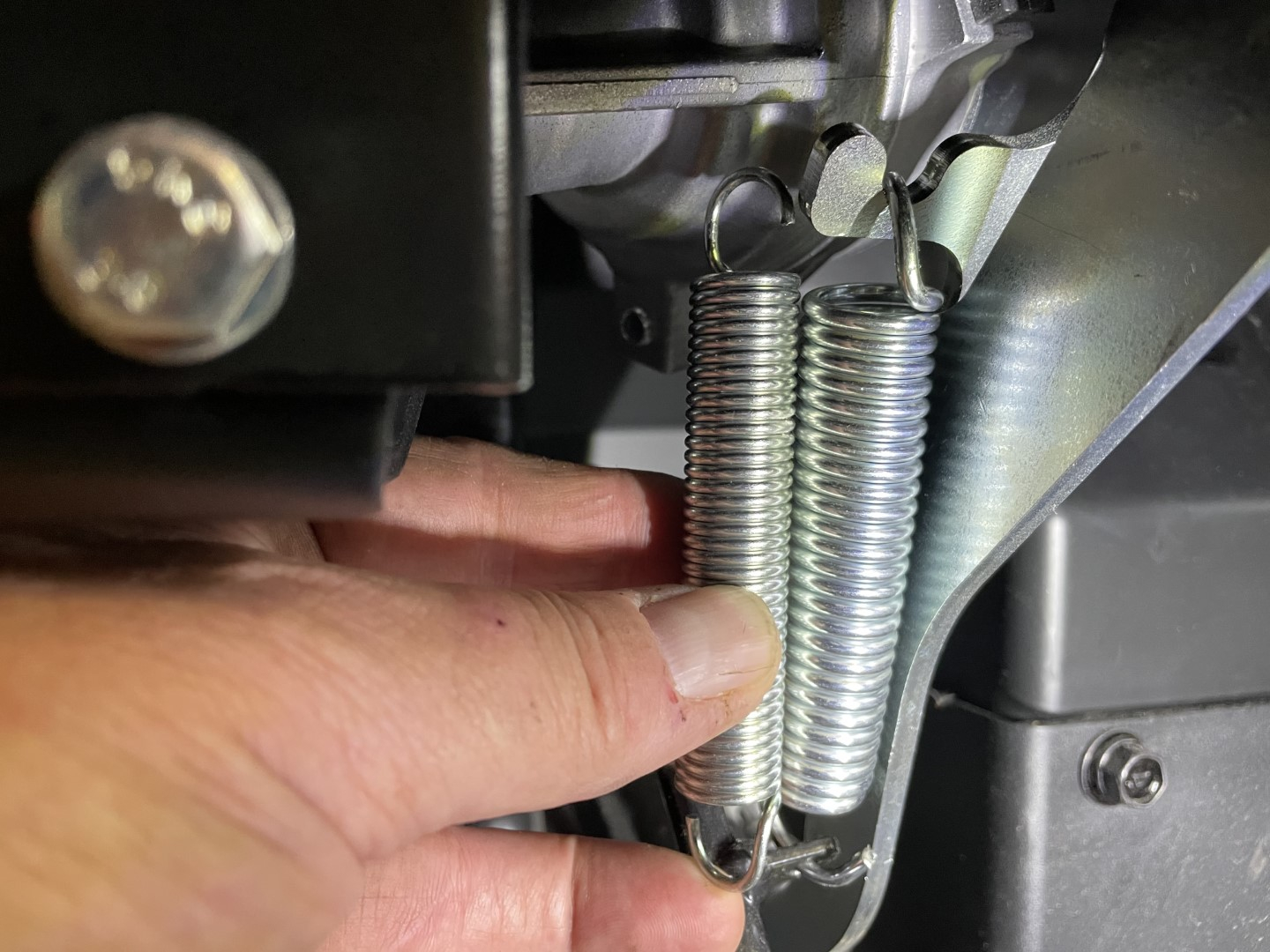 I also replaced the 3 3/4" 0.08" wire ga tension spring with a .11 wire ga spring. The spring by itself worked; both the hinge and the spring has mostly solved this problem for me.