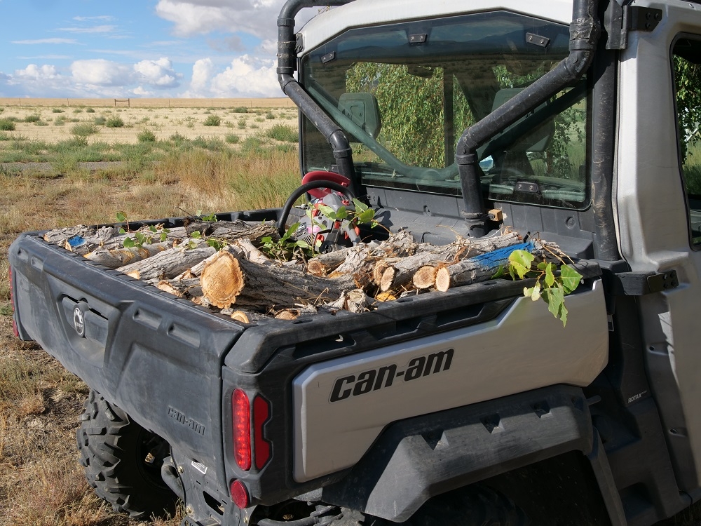 Got a call from an elderly neighbor couple this afternoon. They have a small orchard (apple) and this year the trees are absolutely overloaded with fruit. They'd been propping up the branches to support the weight of the apples but one of them - a big branch - broke anyway and they asked me to remove the broken limb. I went to a pellet stove 4 years ago so my chainsaws have been idle since but I fired one up and went over with the Can-am and did the job. Got a bed-load of firewood out of the deal in case I ever decide to put a wood stove in the garage!