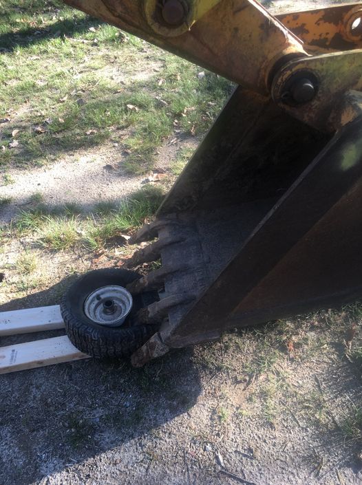 Once the bead is unseated a couple tire spoons, some dish soap mixed with water, and you'll have the tire off. A second person is always helpful. I did my backhoe tires on the ground because it's easier to push down on the bead to break the seal and when the tires alone weigh about 200 lbs you basically roll them next to the wheel and flop them on top.
