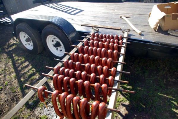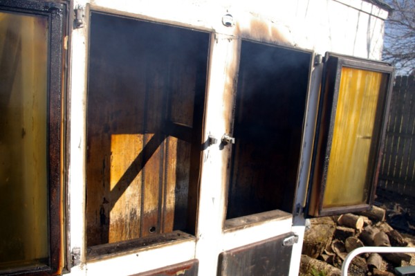 I usually make a couple hundred pounds of sausage for Christmas and Easter. I use an old commercial fridge and have a steel pot inside that I use to burn the wood. It has served me well. I usually put charcoal in the firepot and throttle it down to get the casings dry. Once the casings are dry i put in the wood and bring up the temp. If you try to smoke it before the casings are dry it will make the casings rancid. Time is the essence here. Took many years to get the recipe and technique down.