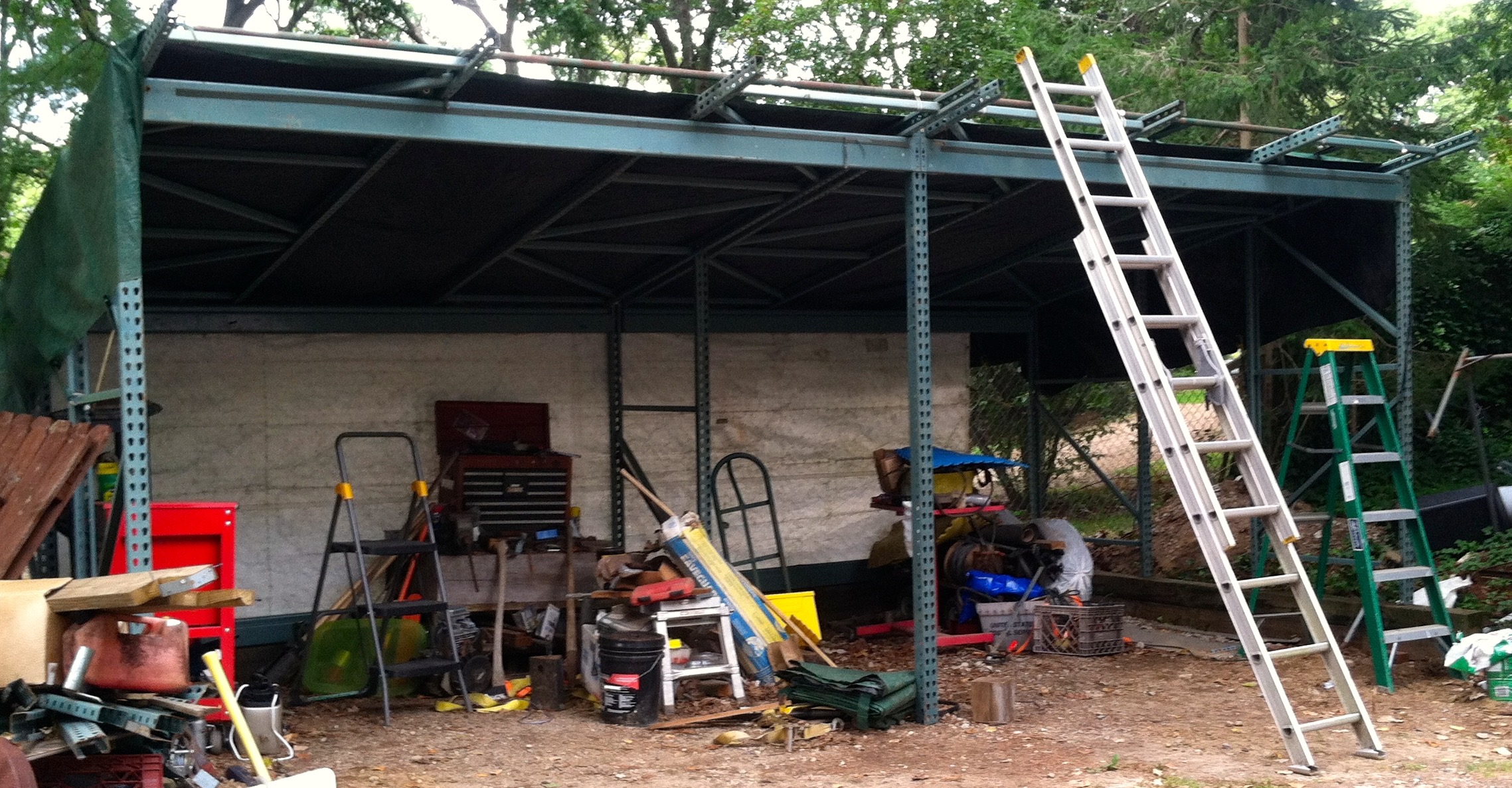 I think the steel racks might be hard(er) to find to fit my setup. Plus they have the disadvantage of rusting, and having to 'hide' the 'industrial look' (would want to make them look like a regular wood shed). However, the advantage is for a few hundred bucks (if could be found used) it would require minimum labor to setup, and they're pretty durable.