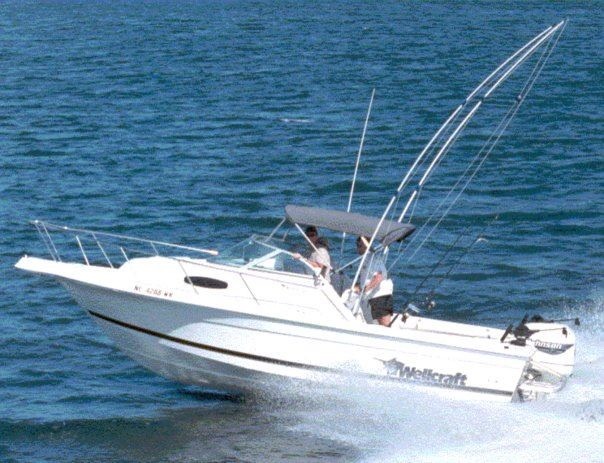 This is my "big" boat a 23' Wellcraft. The photo was taken at the 2001 Atlantic Beach (NC) King Mackerel Tournament (we didn't win anything). We were coming back in through Beaufort Inlet when the helicopter snapped the photos.