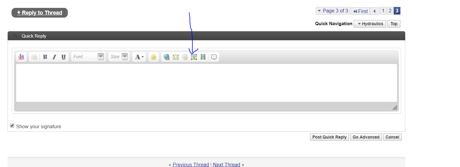 From a desktop (or on my android but not viewing as mobile version) click the picture icon at the top of the reply box. Then find the pic on your phone and upload it.
