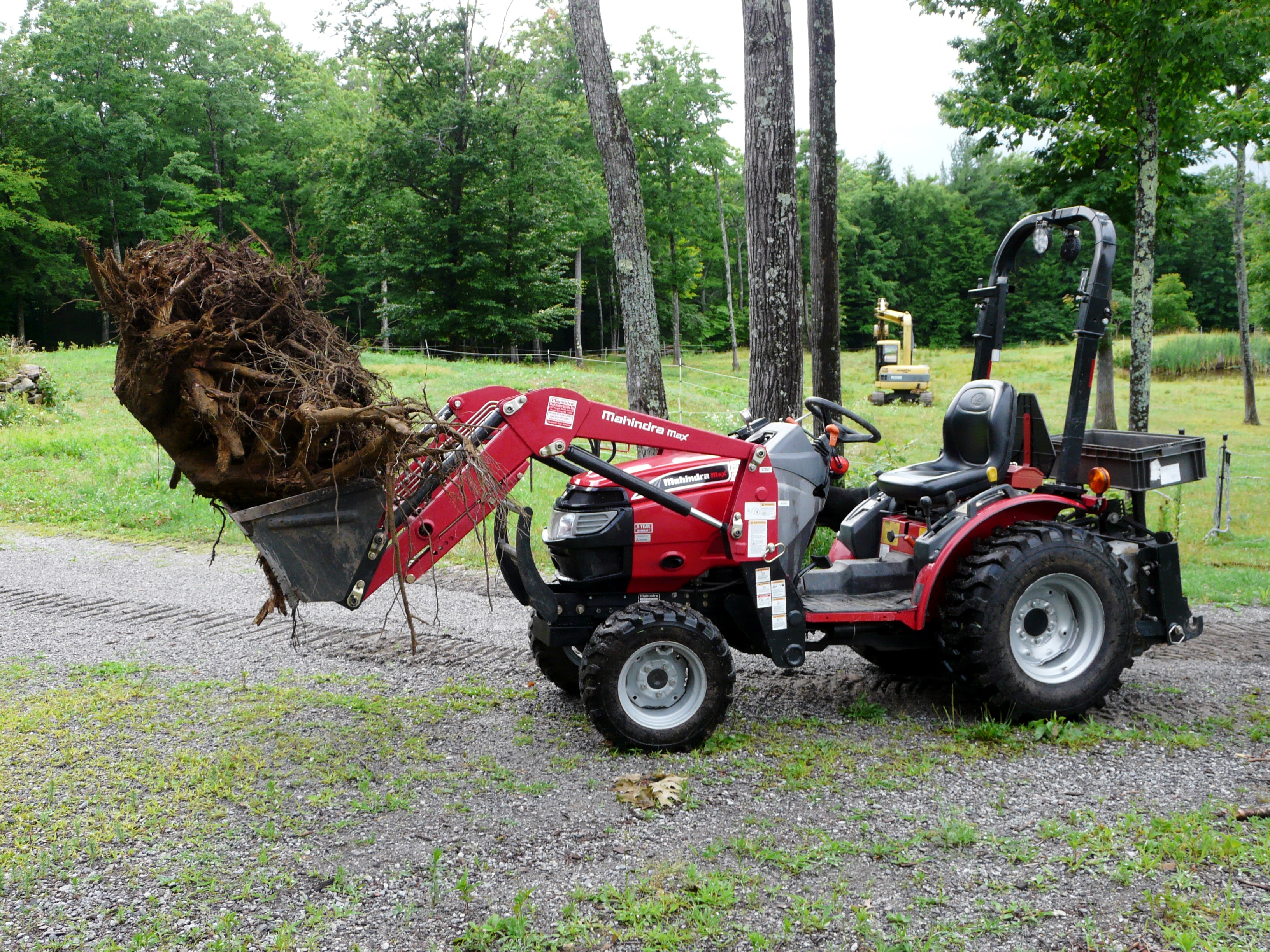 The smaller size of the Max28 is good in the woods, but the Max does not have the weight or the beans to dig out 3" to 5" stumps with the bucket.
