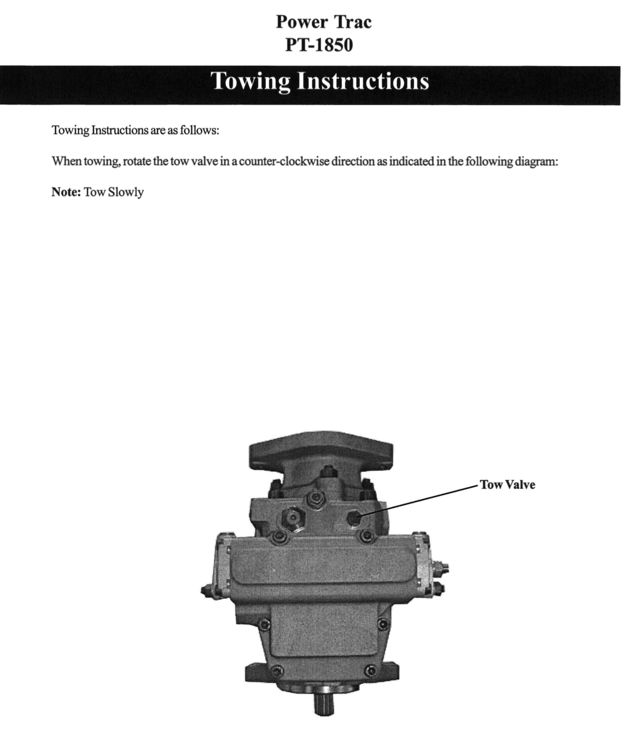Releasing the brake is a two stage operation. I'll definitely call Terry for a refresher course if I ever have to do it for real. First, use the handle on the Brake Tender to manually pump the pressure up above 1000 PSI (after 500 PSI you need a lever to do this, Terry recommends a 2x2). Second step is to loosen the Tow Valve per Ken's post just above. But Terry got pretty specific about how many turns (not many) so I'd check with him before attempting to tow. Since I have a blade on mine right now, and since the blade won't stay up with that tow-valve open, I'd have to tow from the back. I'm glad my solution didn't require towing -- I got it in the barn about 10 minutes before a burst of freezing rain went through.