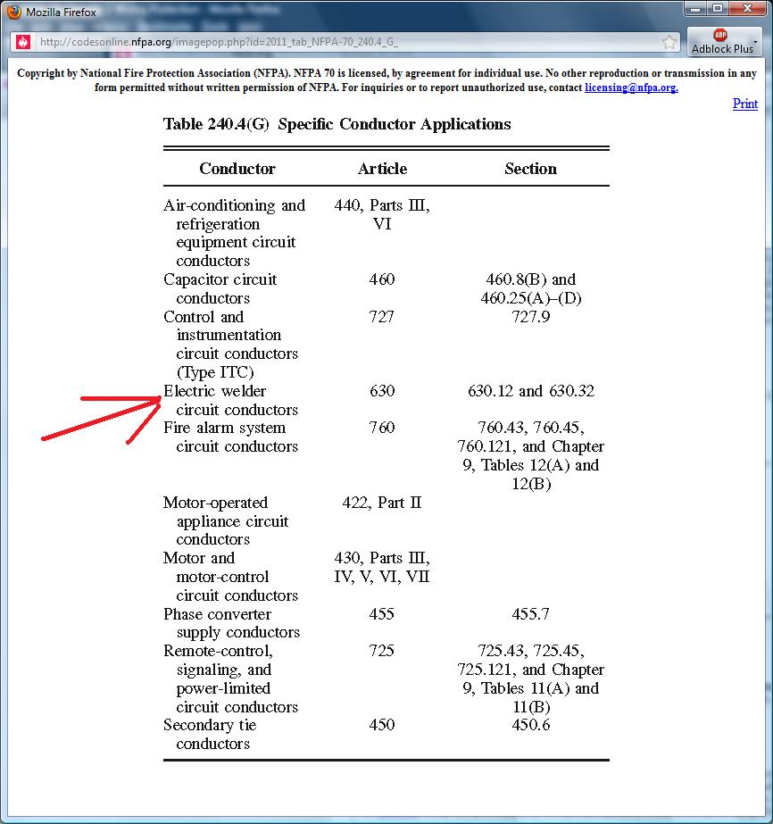 I'm sure there are some exceptions, but they wont apply to things like shops and welders. Those need to follow these guidelines. I stated elsewheres that the #8 will prob be fine for the wiggle box welders used in a residential shop. But just try and get away with that on a commercial job and you'll be doing some rewiring.