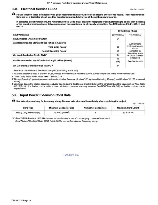 Same for the MVP 210, but use a 25 amp breaker. Again, your mileage may vary?