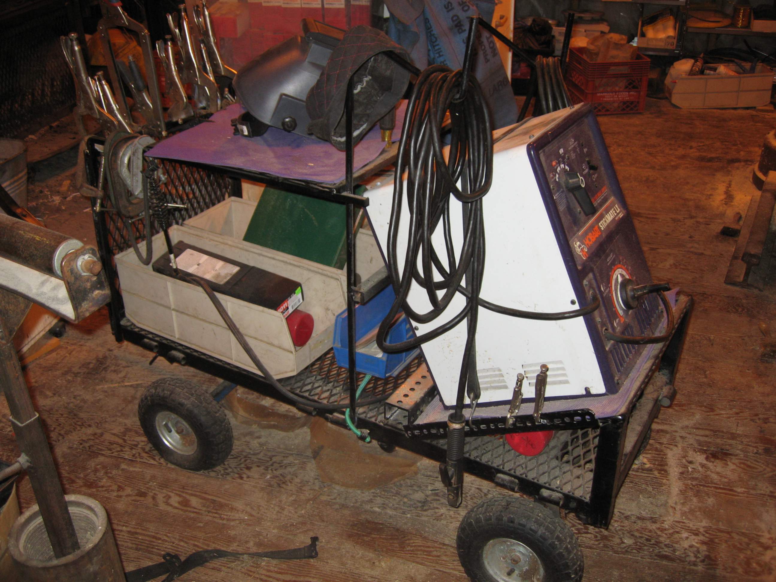 I weld in a barn, and have been planning to build an offroad cart. I have a platform where my shop is, so I can roll my current welding cart around fine, but if I want to move away from that, it's all gravel, and a pain. I am going to move up to a Thermal Arc 252i here in the near future, so I will build the cart to suit that. I plan on 8" aired tires, two in the back and skids on the front, and handles that will pull out and be used to push like a wheelbarrow, and push in/use to coil the gun and ground cables on otherwise. I want to be able to push this thing over gravel and semi-rough ground, because that's where some of my welding occurs. I like your idea of a wagon that you can pull, but I do want mine to be short, so it doesn't take up as much room in my shop.