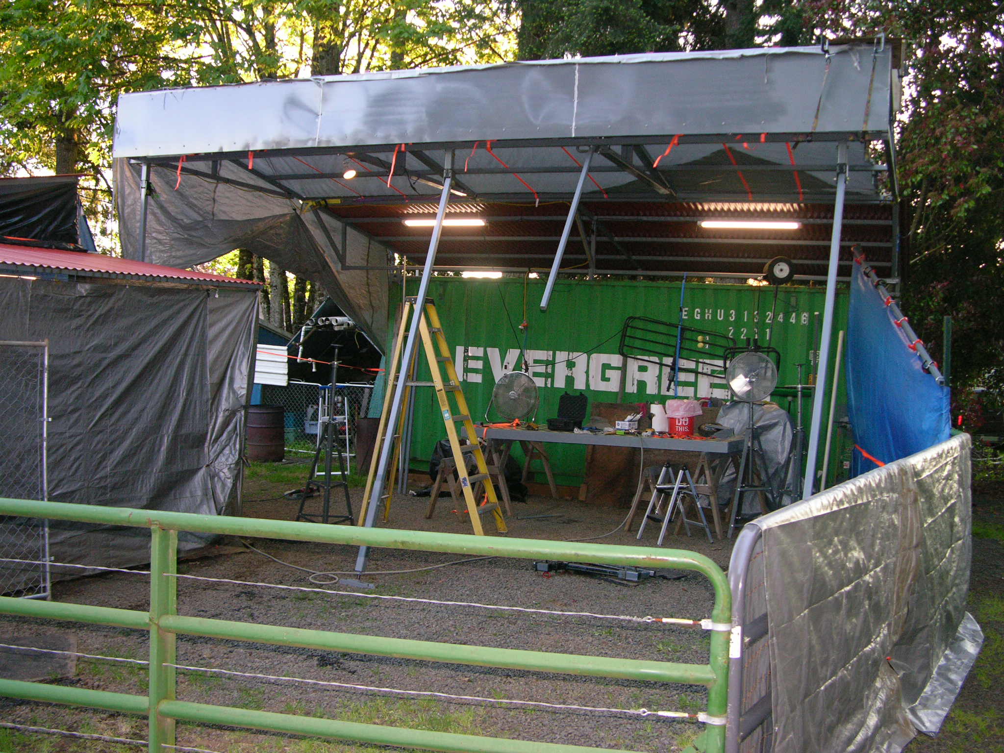 Roof completely shades the container, so it's no warmer inside than out - also gives me a 14x24 DRY area to work on stuff, and the container is gonna be my "weld shop" to clear several welders/plasma, etc, out of the garage.