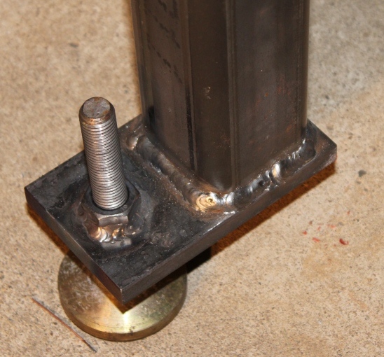I paid $1000 total for the material and have probably 30' of tubing of various sizes left over. I know that's a lot of money, but this will be the tool I will use more than any other in my shop so I thought I should go for it. I got the feet at a salvage yard for about $30. Overall I think it weighs about 1200 pounds. The height of the top is 42" above the floor which is working out well for me. I am just under 6' tall. If I was doing it over again, I would use a little heavier gauge of expanded metal on the shelf but other than that, I don't think I would change much. When the weather is better I will paint all but the top, then it should be good to go.
