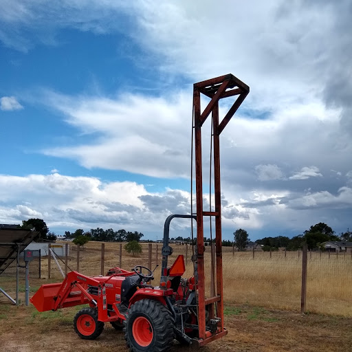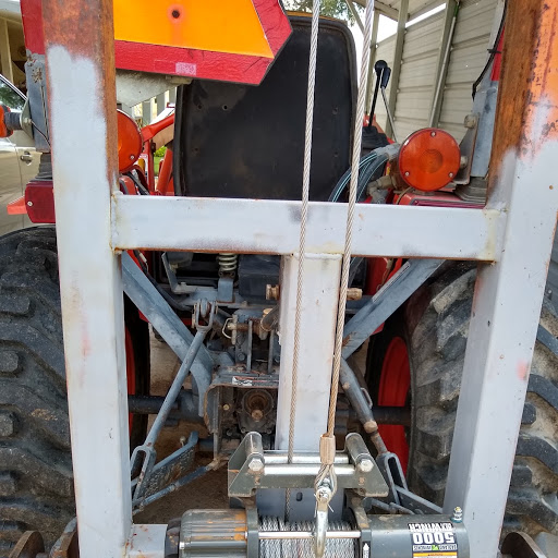 After 22 years my well pump started to give out. fortunately it didn't quit completely and that gave me time to get estimates on pump replacement. The well is over 200ft deep and I really didnt want to pull it myself; till I got the estimates. One pump company wanted 5k another estimate was 4k mimimum and up from there depending on what they found once the got the pump out. The driller report from 1997 said the well was 240' deep and the pump was at 230. I estimated the pump pipe, wire and water in the pipe to be between 600 too 1000 lbs. It would take days to pull this with an engine cherry picker. I had a bunch of 2x3 rectangular tubing left over that a neighbor had kindly given me for a trailer project. I then went to a local recycling yard, Westen Metal in Fresno where I can buy scrap for .35 a pound. New steel has gotten so expensive that I rarely build large projects any more. I built this rather crude pulling rig in a day with what I had laying around and what was able to pick up at the recycling yard. I also picked up a 5000 lb atv winch a Harbor Freight. I mounted the tower to the 3pt of my kubota, added a winch to the bottom of the tower and two pulleys at the top. I also added a ring between the two pulleys at the top in case I needed to add a snatch block if the winch wasn't up to the task at single line pull. My cousin worked for a well company years ago and had a lifting bell for the pipe and the floor plate for holding the pipe at the top of the well casing. this saved me about $600 since I didn't have to buy these tools and I didn't have time to make them. It turns out the winch was up to the task at single line pull , it ran most of the day pulling and installing pipe with without getting hot. In six hours two of us pulled all the old pipe replaced the pump , pipe, wiring, check valve and had the well seal back in place. I bought the best 3/4 hp pump I could find, 1000.00 for the pump,check valve and control box. 400.00 for pipe and 300.00 for wiring . I figured that if the pump company charged me full retail for the parts, labor for their crew and rig was in excess of 300.00 hr. I didn't have that kind of money available on short notice. anyway here are the pics