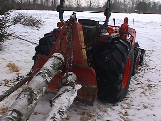 The nice thing about having one of these winches is that you can pull the logs out to the skid trail with the winch. It saves on compaction of the forest floor and also tearing up the forest floor with spinning tractor tires and ruts all over the place. Then depending on the size and length of the logs you can attach them to the winch and pull them out. By having the nose of the log off the ground you can pull alot more board foot out at one time without the worry of the logs digging there noses in and upsetting the tractor.