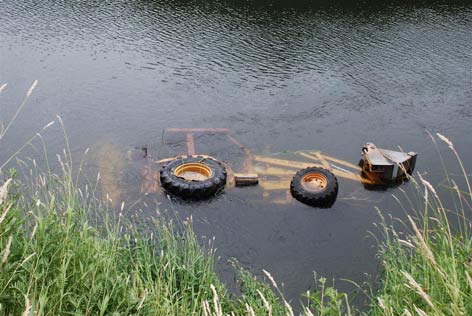 Two large tow trucks, with an assist from the Kent Fire Department surface water rescue team, took an hour to pull the backhoe from the river and back on to the paved trail that runs along the river's east bank. The trail was temporarily closed.