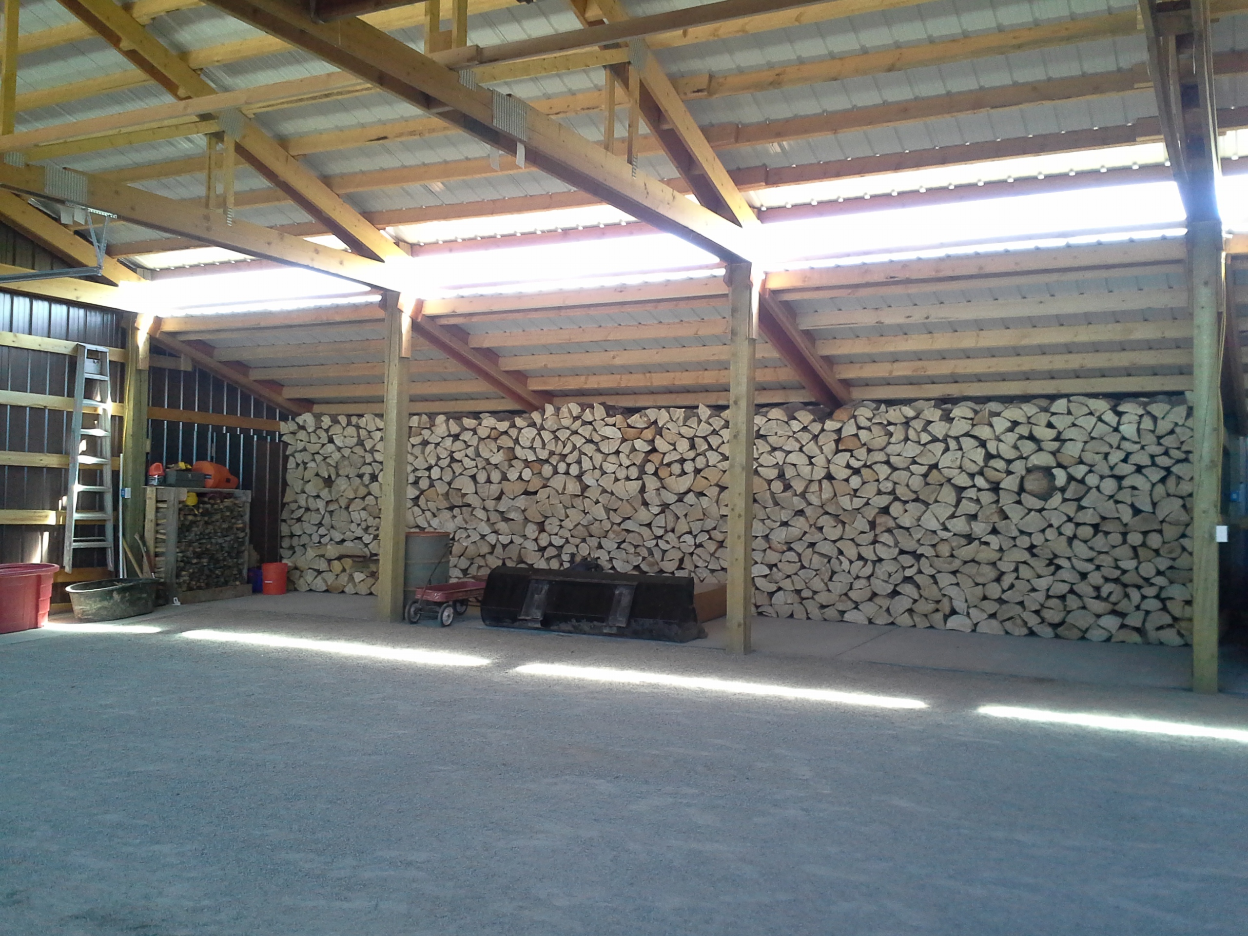 Thats alot of firewood !! Did you buy your own materials or buy from a pole barn dealer ? That looks like a double truss system ? I have a quote of $32,000 for a 30x50x16 with no floor.