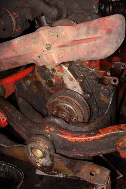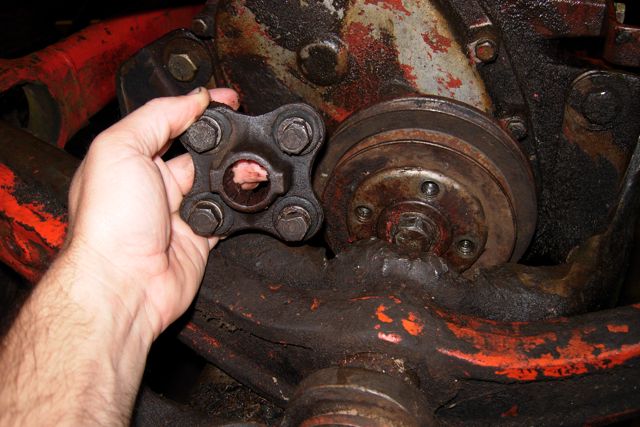Can anyone tell me what I'm looking at? This is the front end of a Ford 881D that has a seized engine. I'm trying to bar her over. At first I was placing a large wrench over an odd shaped piece of steel bolted over the pulley. The inside of this piece clearly is the female receiver for a hand crank of some sort.