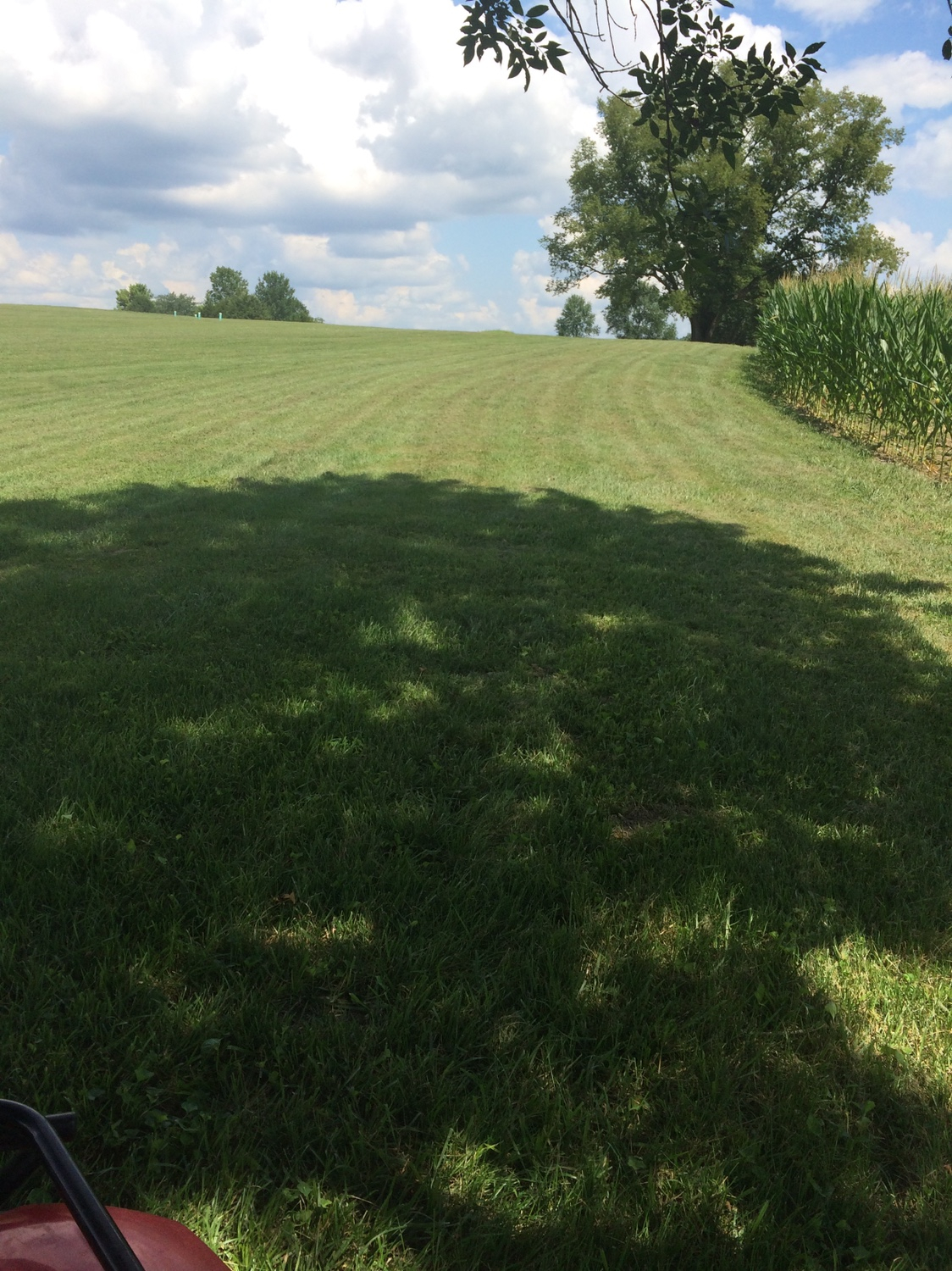 Having a lawn buffer keeps the bears, bobcats and coyotes away from the house, my livestock and pets. Plus mowing is very relaxing, and as I mow I get to enjoy the view of my property and it reminds me why I moved out to the country in the first place.
