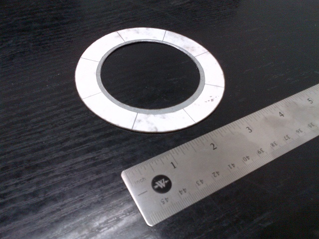 Started making a sheet metal (0.030") bearing shield today at lunch. Figured it'd hold up better than the cardboard one, especially if I need to put the heat gun to the collar. Just need to finish up the ID with the die grinder.