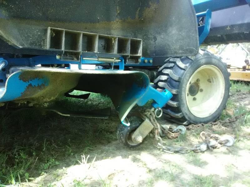 Was able to use that chain wrapped around a tree to work it back out. Had to move the chain a few times to different places on the deck and back up very very gently. Blades run clear now, but I'm still not sure what, if anything else got messed up.
