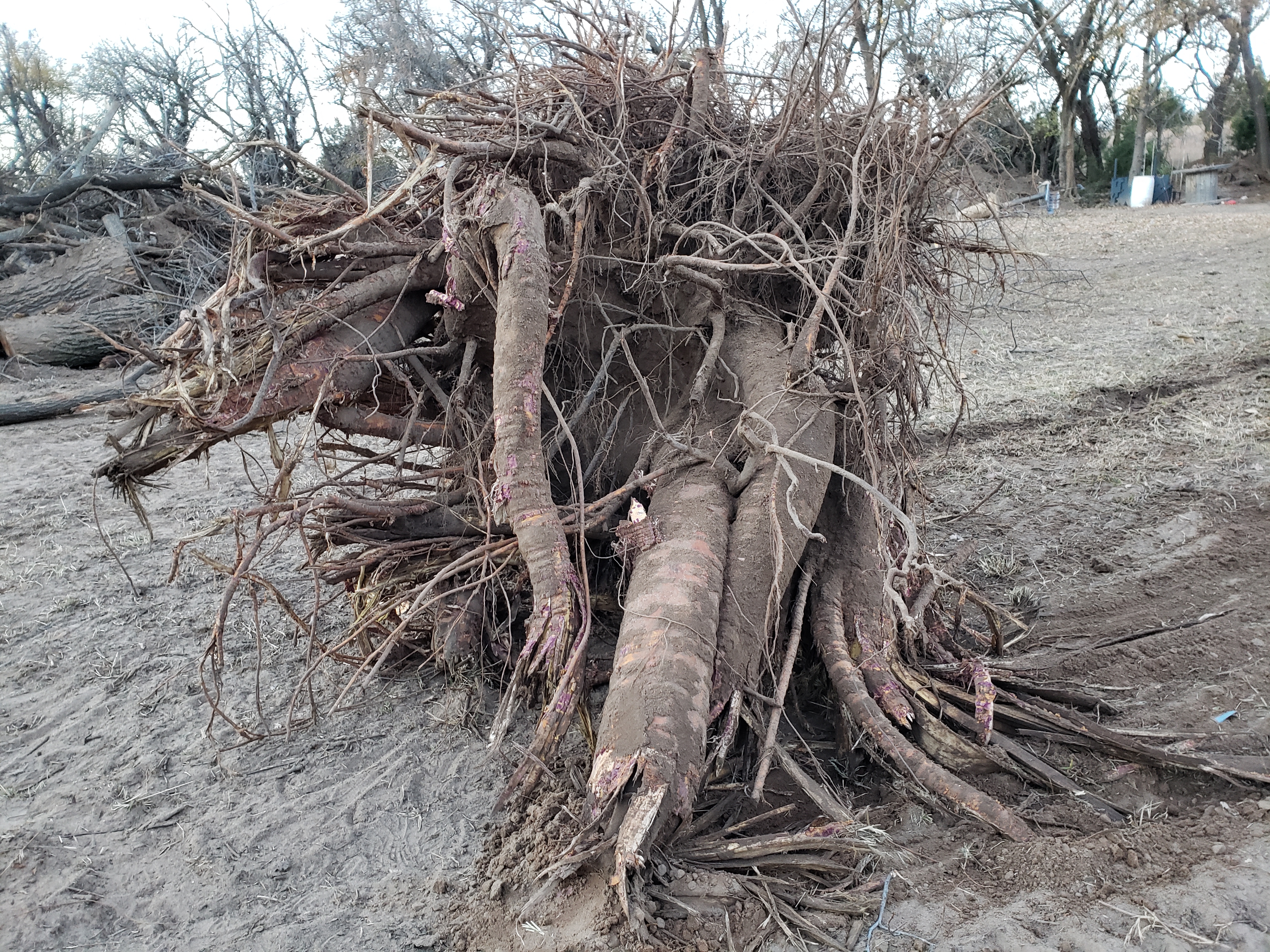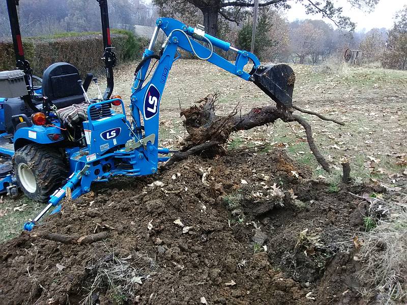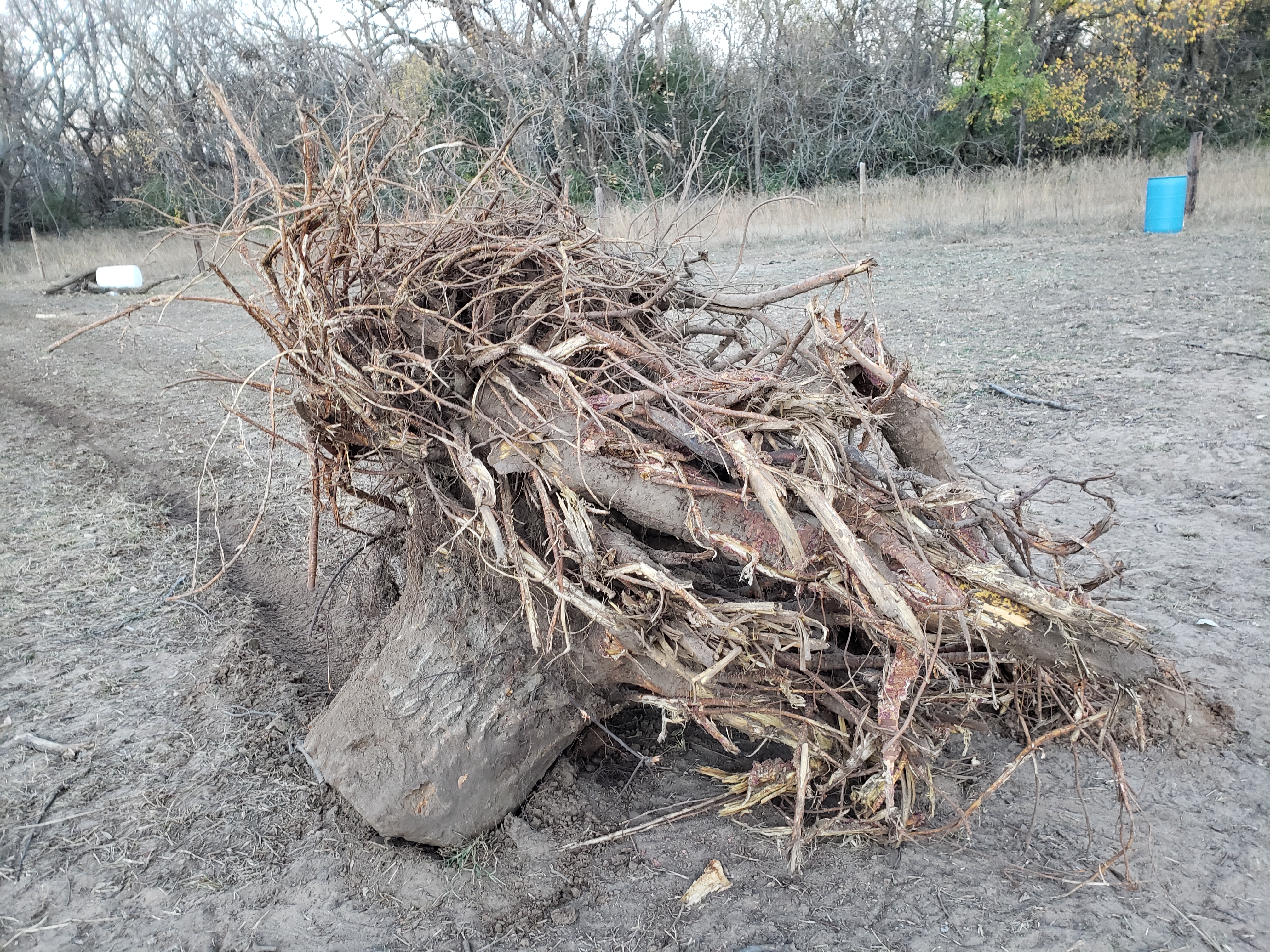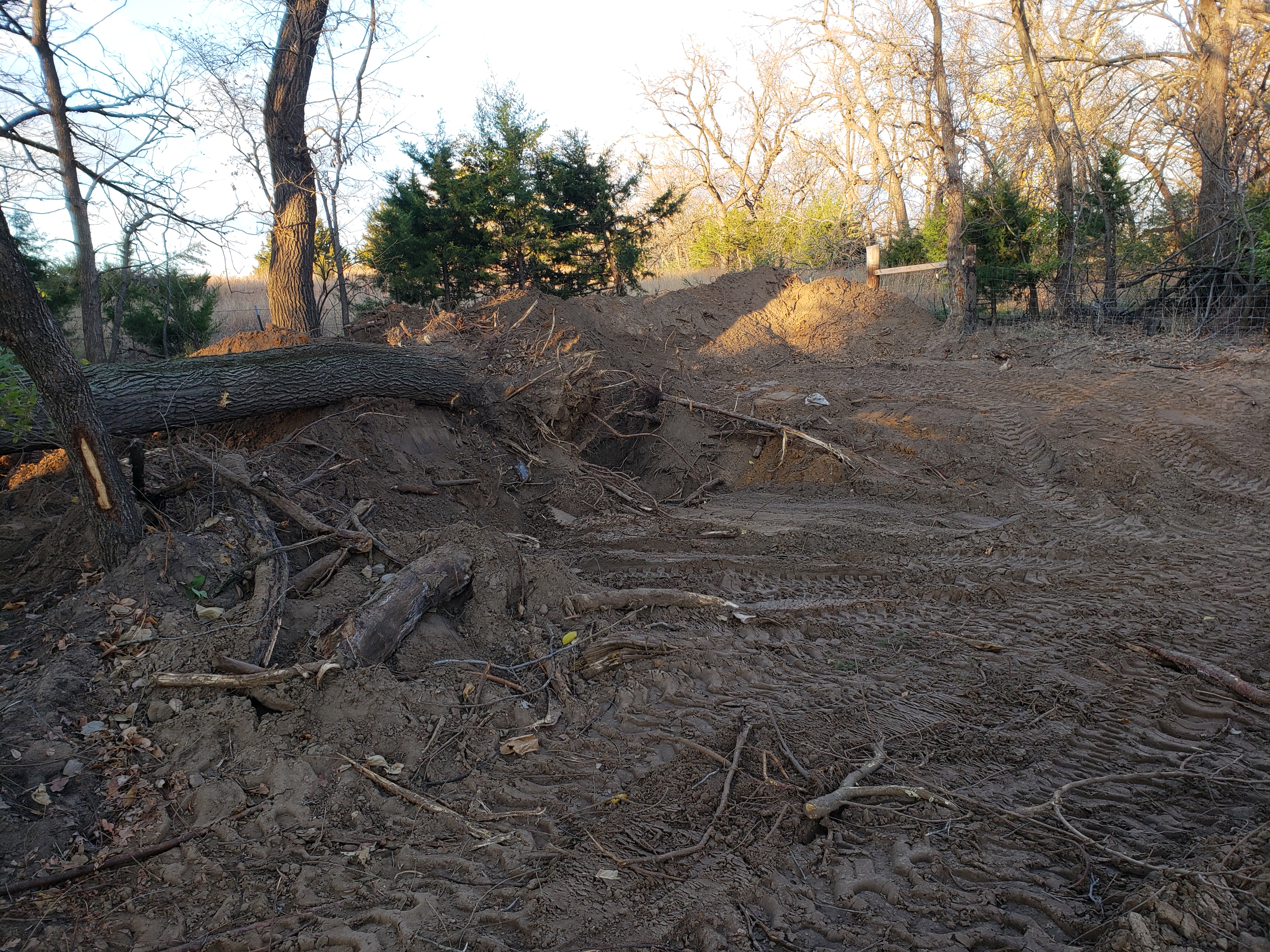 Drug this ginormous stump out to rebuild the shooting range. It took one 40-hp LS tractor and one 1998 Dodge Cummins to get it up to flat ground and the truck took it to the burn pit.