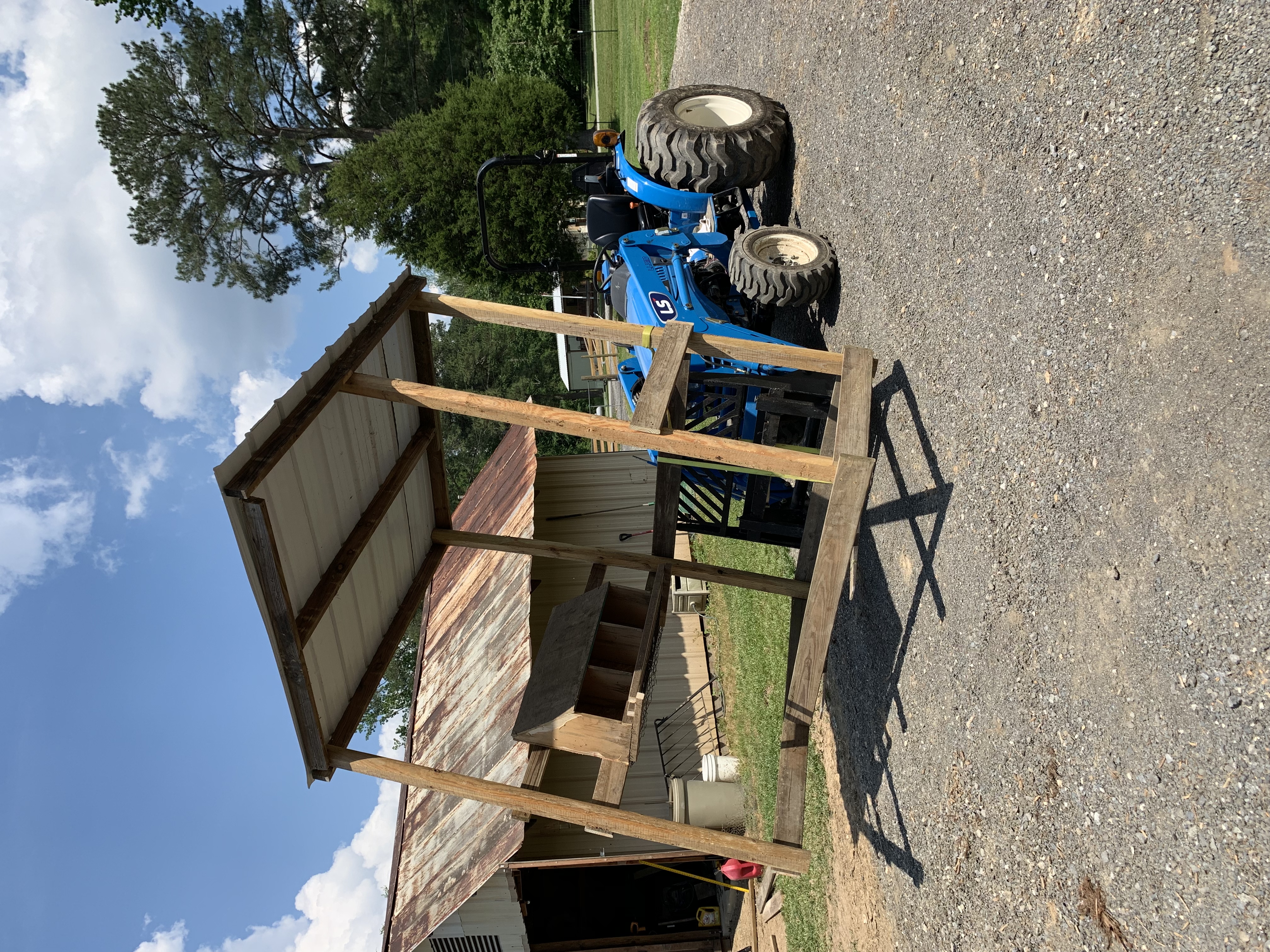 Saturday, we built a new chicken coop for my son in law and daughters chickens, we built it here at my house, because I have all the tools, then I picked it up with the pallet forks on the FEL and hauled it the quarter mile up the road to their house, where we then put the metal sides on it and attached the 18 ft long run to it....