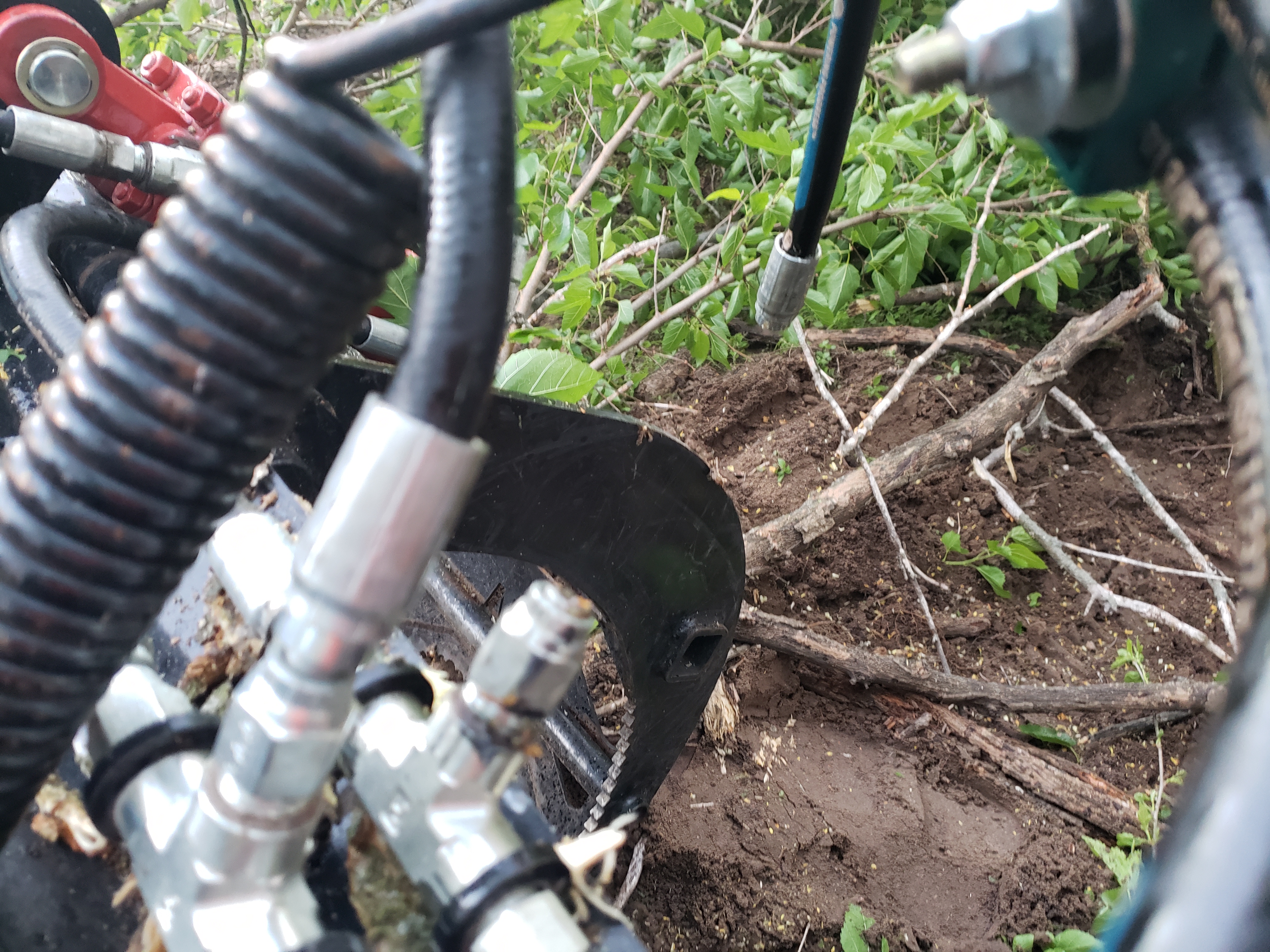 Broke my tractor today. Well...not really. Broke a hydraulic fitting. Clearing out some small brush and dead trees for a horse shelter/ feed storage shed and somewhere in there I lost grapple controls. Looked things over and apparently had a trunk pull against the fittings in the center of the grapple and broke one fitting off, the other fitting was bent pretty bad.