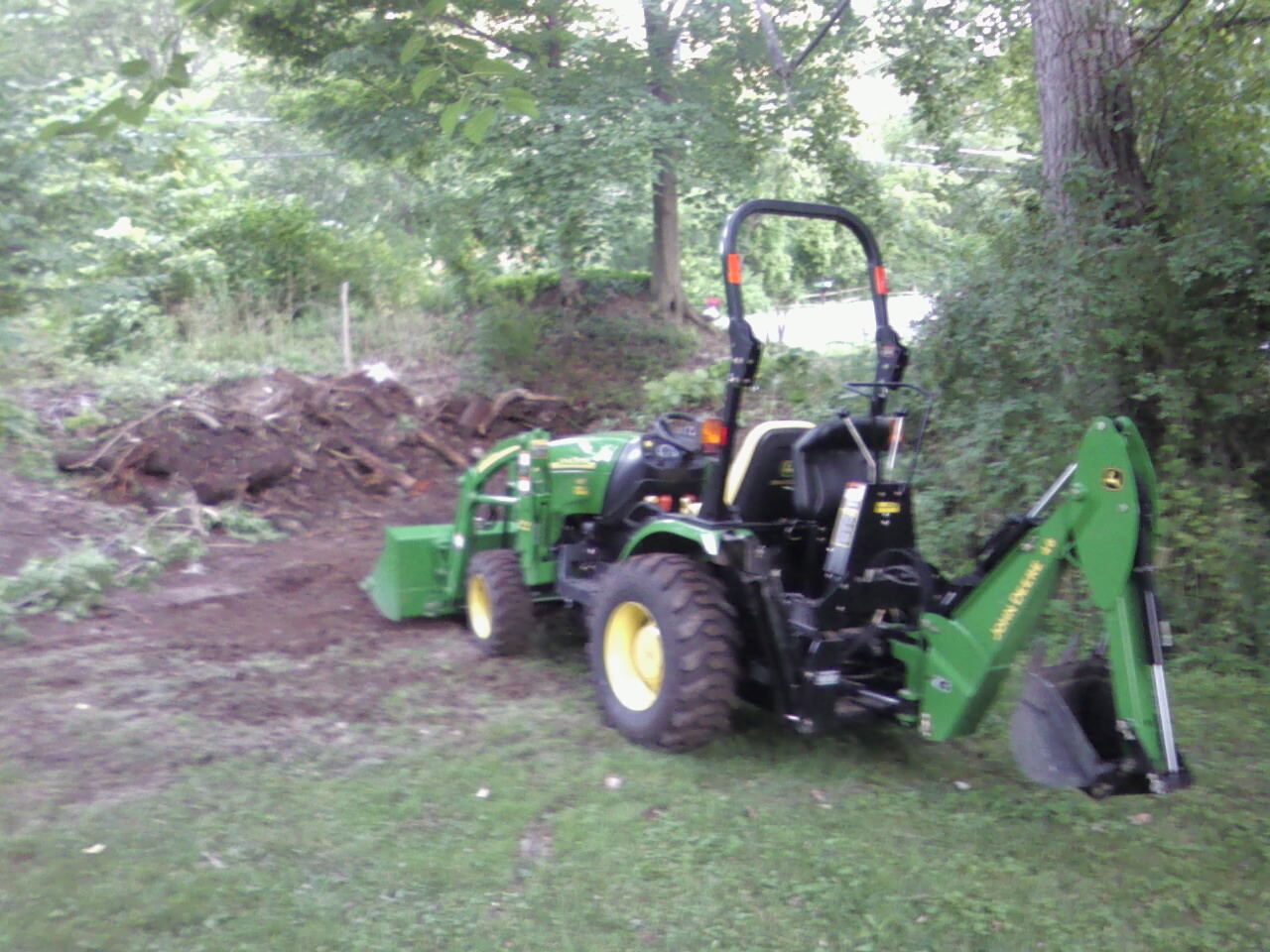 Working on cleaning up what the previous owner used as a kettle hole. IE, dumping pit for everything they didn't want. The little 2320 made quick work of piling it up, but now what do do with it. I either need to move it to a different part of my property, or load it up to get rid of. Instead of dumping everything out back, this is in front yard. I am wondering what is available for the 200cx, and will save my back. Pictures show the current project, but in the future there will be brush cleanup, landscape projects, who knows what. I am looking for options, pallet forks, brush fork, grapple. Ideally I'd like something to pull the junk out and leave the soil.