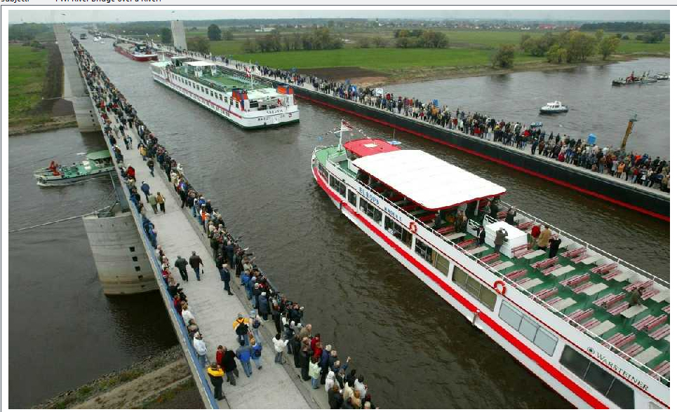 Someone sent me this. The photo is a channel-bridge over the River Elbe and joins the former East and West Germany.