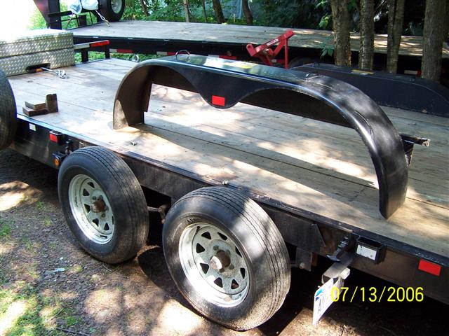 Trailer, 18' (16' flat, 2' dove/beaver tail). tandom axle 12,000 trailer hooked up to the Torq lift super-hitch.