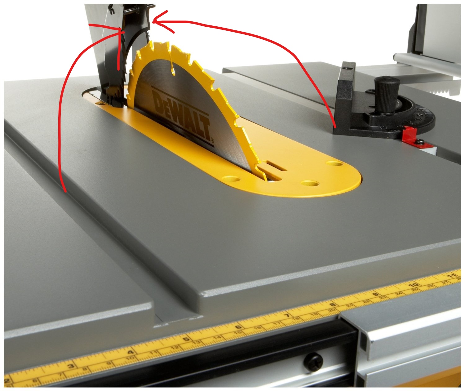 That is exactly what happened. My old Delta table saw never had one of those splitters anywayThat's a riving knife. It will prevent a cut from closing back together when ripping a board with wonky grain, leading to a pinch and kickback, but it wouldn't have any effect on plywood and it won't prevent all kickbacks. If a board somehow gets crooked between the fence and blade, there could still be a pretty bad kickback. I had that happen once and it was like getting kicked in the gut.