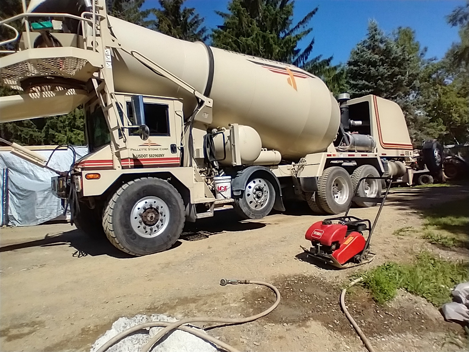 The front unloading trucks are about all we see around here. That one and the second one that brought our concrete were both on Oshkosh AWD 6X8 chassis with a front and rear air tag axle.I’ve never seen a cement truck like that. It looks backward.
