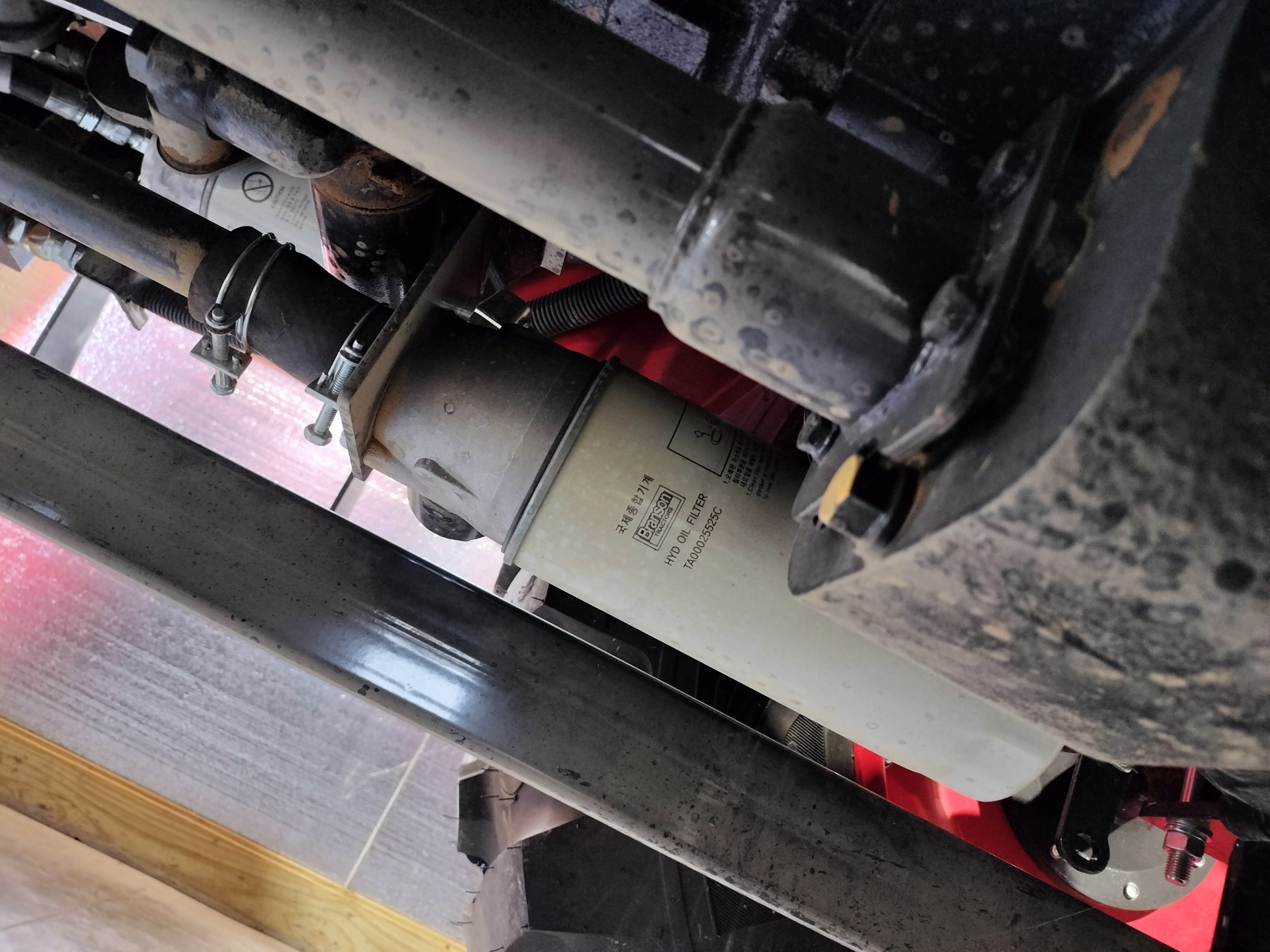 almost put it on its side. decided the fence would be easier to fix than flipping the tractor upright. Colorado blizzard, about 1.5 feet of super heavy snow. mfwd on, chains on rear tires. hit a drift with rear blade and it spun the front off the side. slid down sideways fast. maybe 6 feet of drop at a 30 degree angle to the creek in the bottom by the trees. took out 2 t posts and a bit of paint on the side of the loader and fender rubbing the wires did not hit any hoses or wires with the t posts underneath.