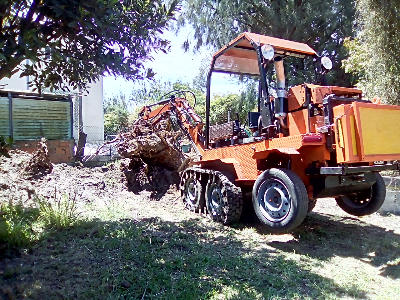 First had to use my homemade backhoe to dig a 25+ years old pine tree stump that had the roots pinching the water supply line for the orchard irrigation system. Ended up breaking the swing cylinder mount, not once but twice. At least now I added enough steel to prevent this from happening again. But got the stump out anyway. It's massive, most likely to be over 1800 lbs.