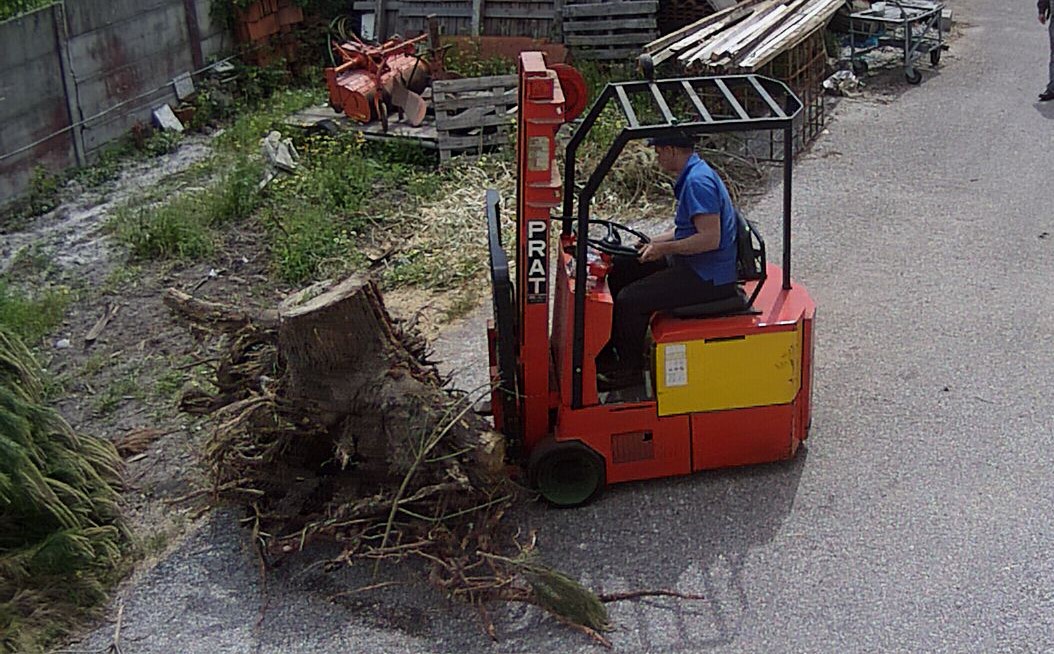 Then I had to use the tractor with a 5/8" steel rope to pull the stump out of the garden, up to the driveway, so I could finally use the electric forklift to move it to the resting place where I'll cut it with the chainsaw eventually. No pictures of the tractor pulling the stump though.