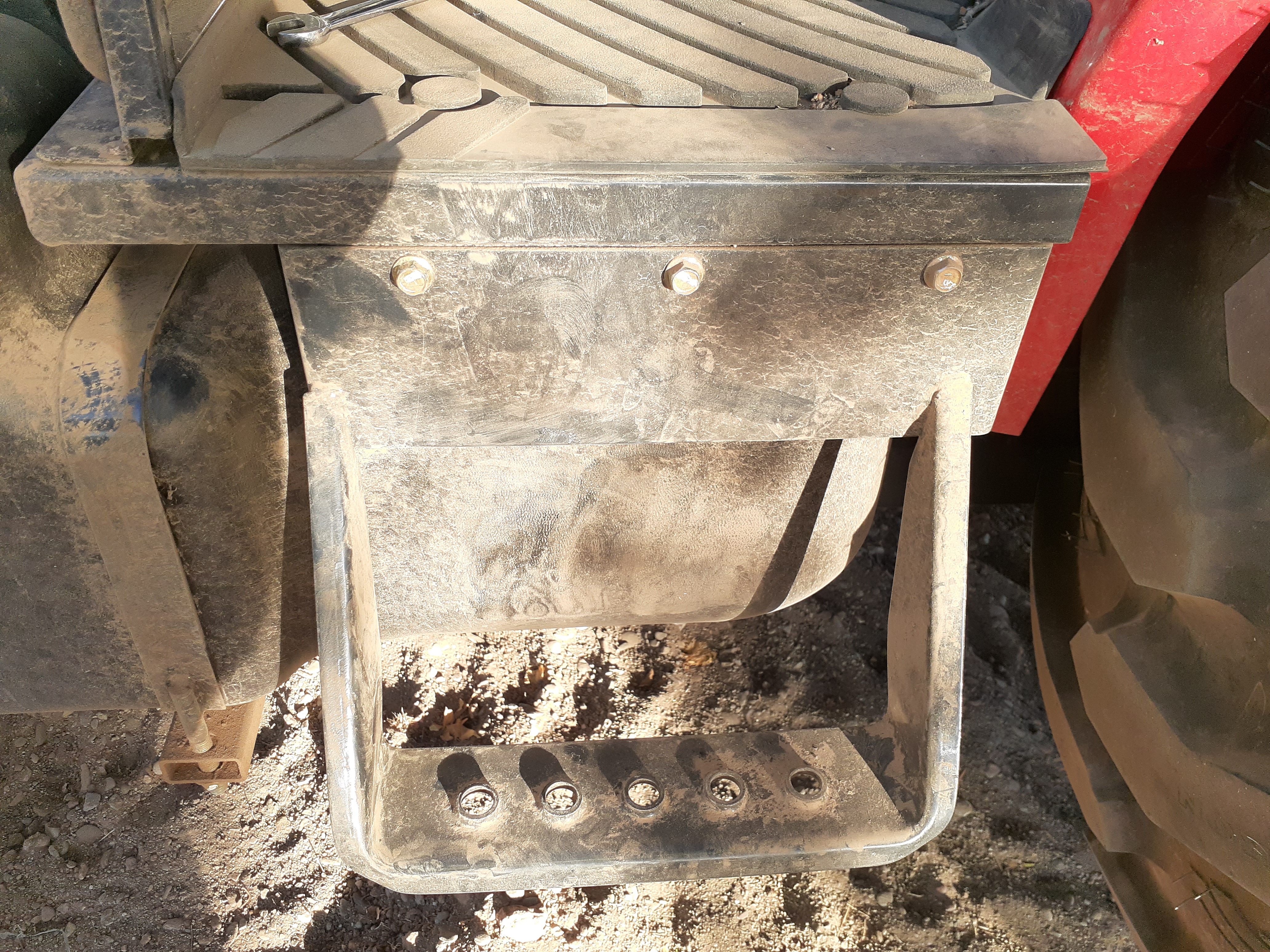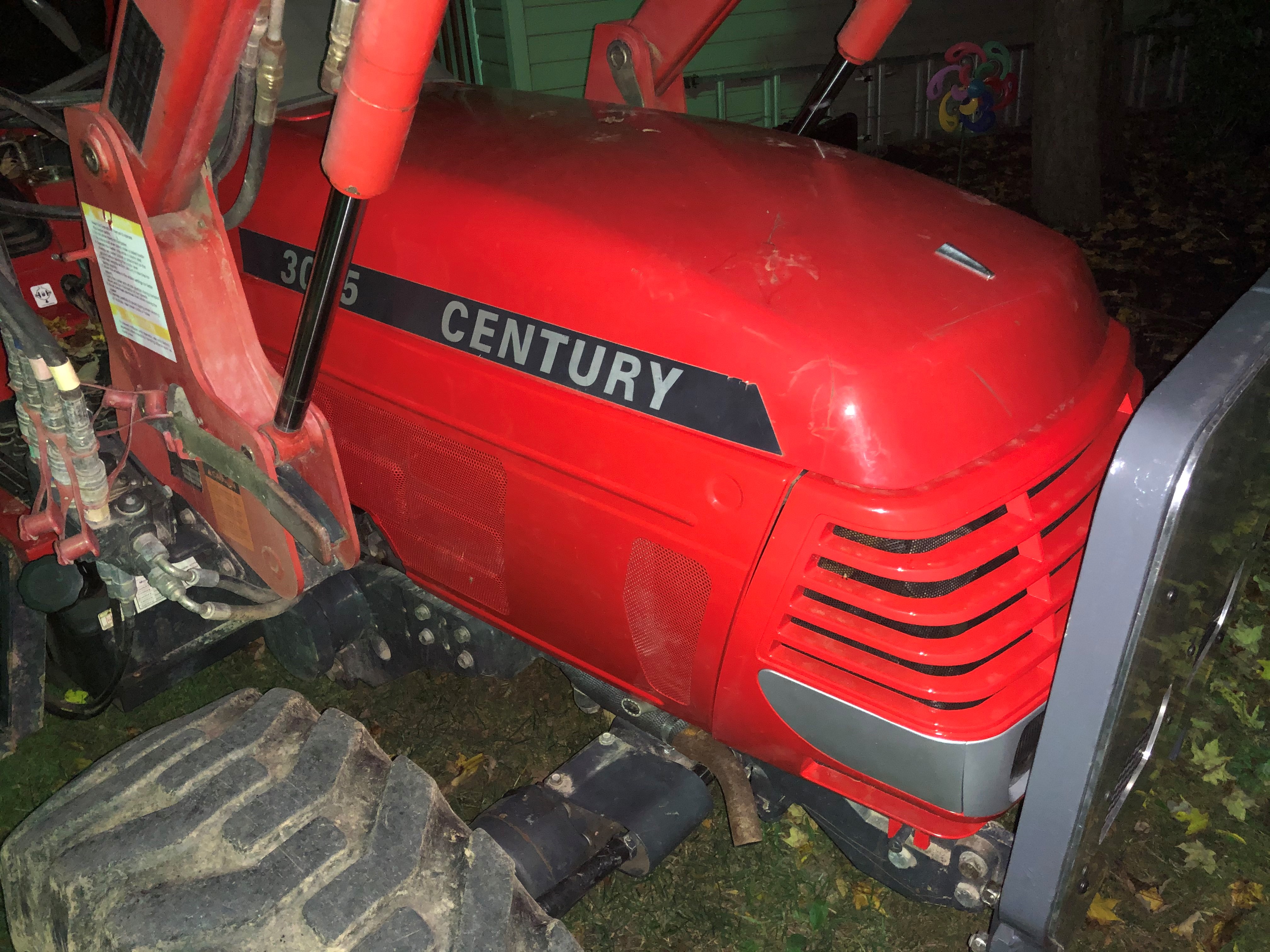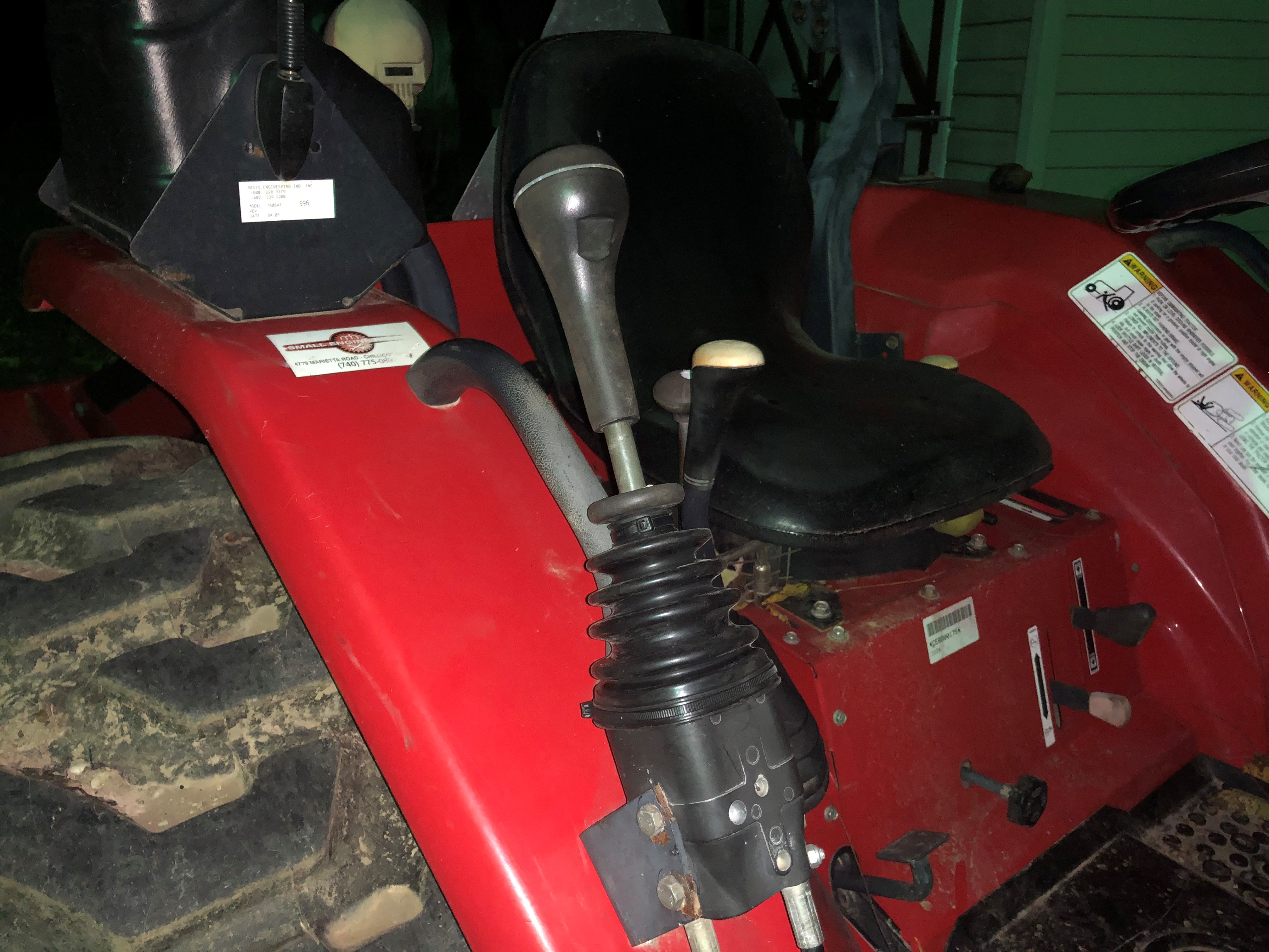 Replaced the non-existent hood side panels. Had to modify a set from a 3820 as the 3520痴 are no longer available. Had to remove the lower attachment pins then touch-up the paint with Rustoleum Cherry Red spray paint then modified the tractor lower brackets to accept the bottoms of the side panels. Placed some セ ID hose over the tractor brackets to keep from scratching the panels.