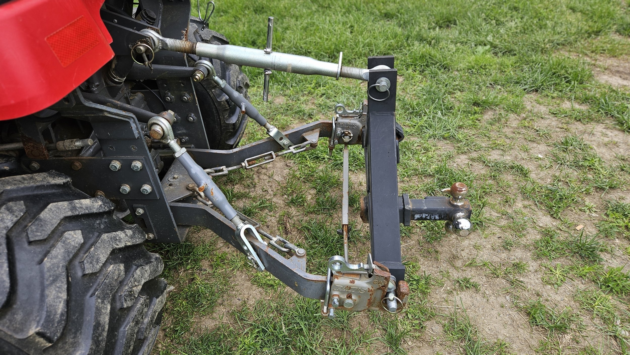 this is with 2 kubota side link leveling links. I needed ability to maintain lift height at lowest point on one side with ability to have other side higher for road grade.
