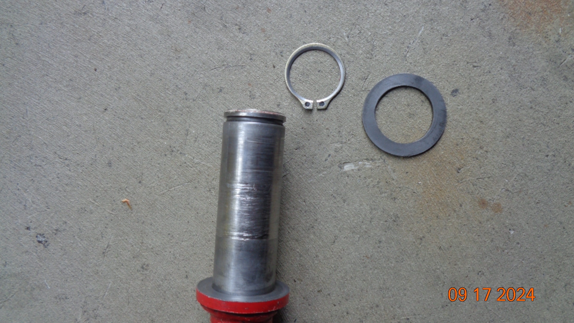 Hopefully, a pair of new snap rings will cure the problem. Looks like a 1" OD shaft, with a 0.9" ID on the snap ring. Hope I can find that locally. There really ain't much meat left on those snap rings... shouldda picked up on that a while ago, I guess; looking at it now, it's obvious they've been worn down quite a bit.