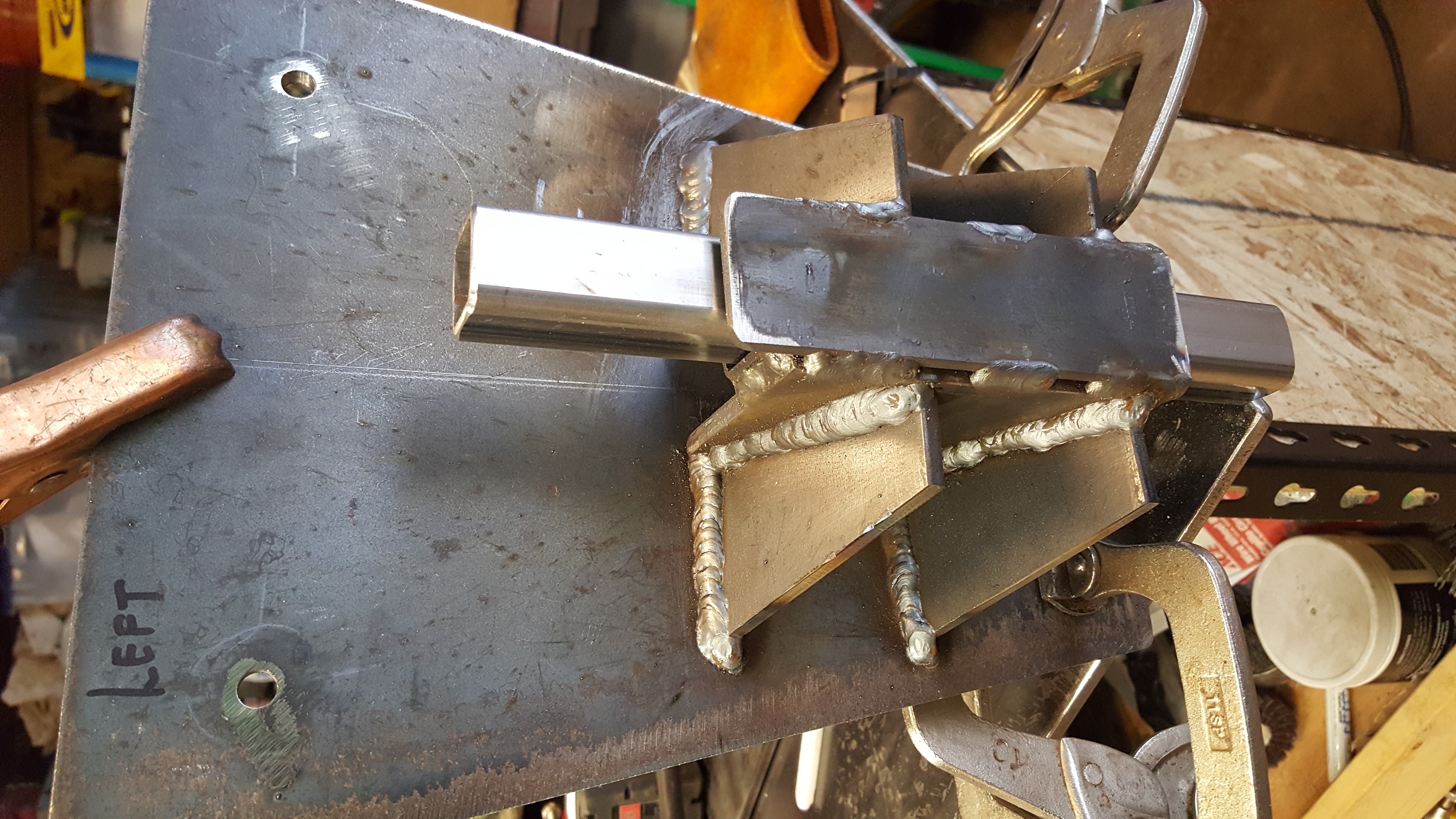 Ok, it's been pretty cold out in my unheated garage, but I finally managed to tack up/weld 1 of the support assemblies to add my new UHMW skid shoes (will be the same as the Dozer Blade).