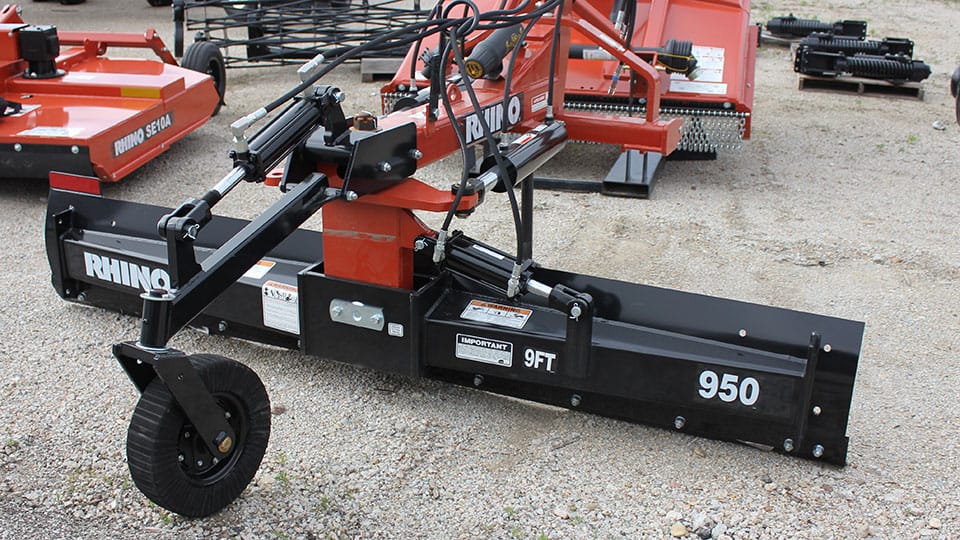 When you are looking for a rear blade, I highly advise that you get a 9-footer. Be sure to look at the specs, while all the manufacturers of these (true heavy-duty rear blades) at 1000lb plus are similar and all of them should work well, they DO NOT all articulate the same amount. Some tilt more than others, some offset more than others, and some don't even angle 45*. :oops: