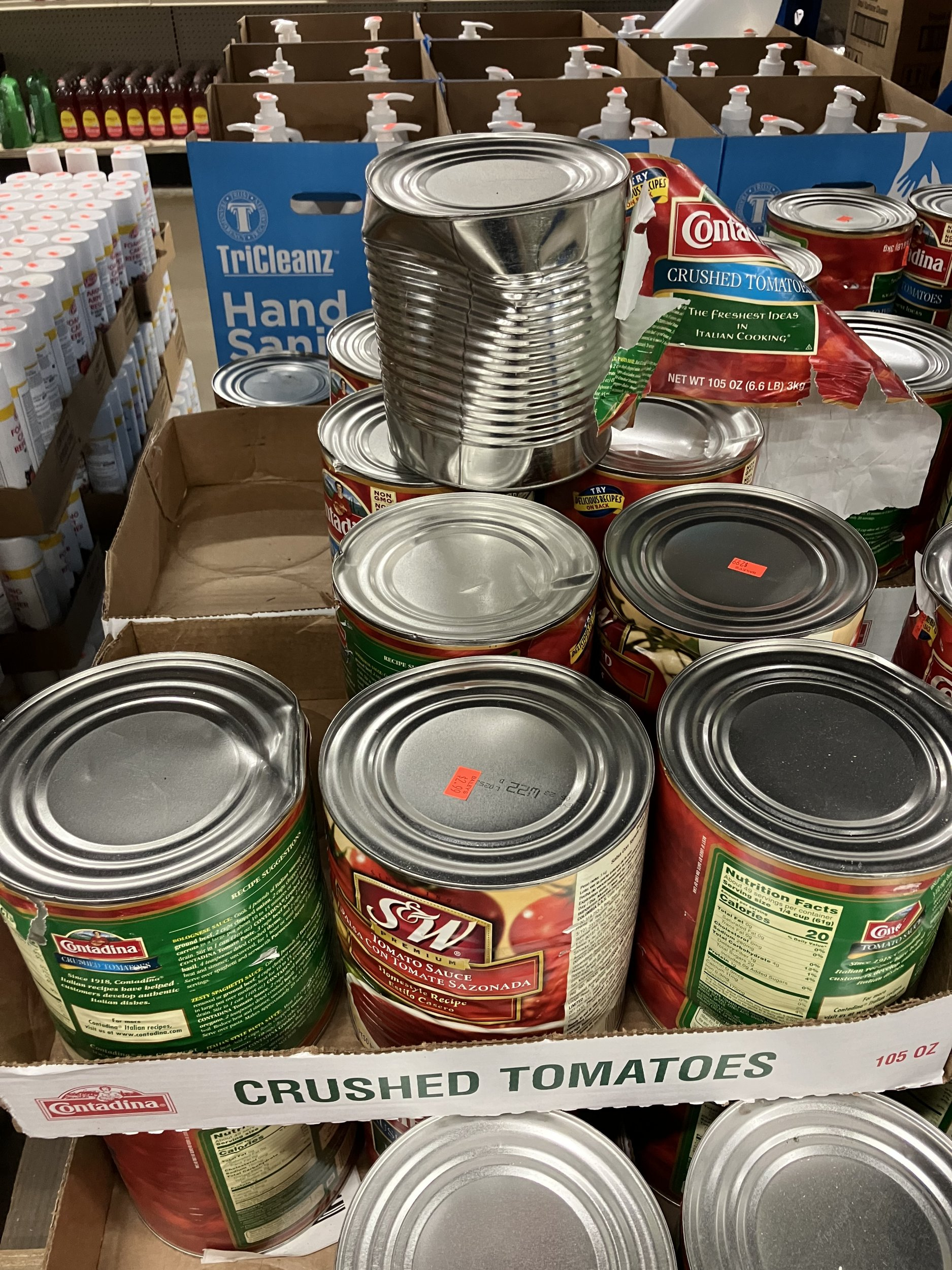 They've got skids of canned goods. Small cans to the large cans. They had 6 #10 cans of apple butter for $14.99