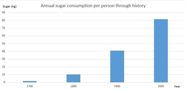 NIH recommends no more than 30 g per day, which would net under 11 kg per year, but we're averaging almost 8x that amount: