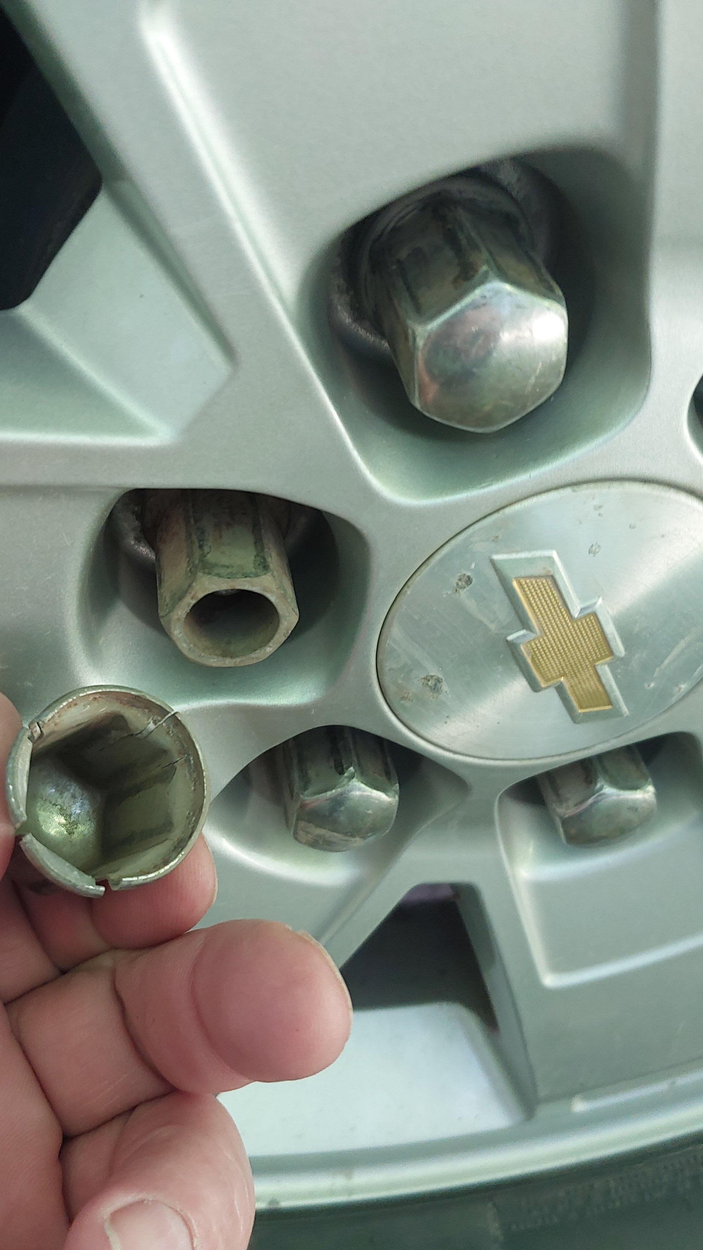 I recently twisted up one of those lug nut covers on my Jeep...and 2 hours later, finally got the rim off! (And then had to buy a new stud!)