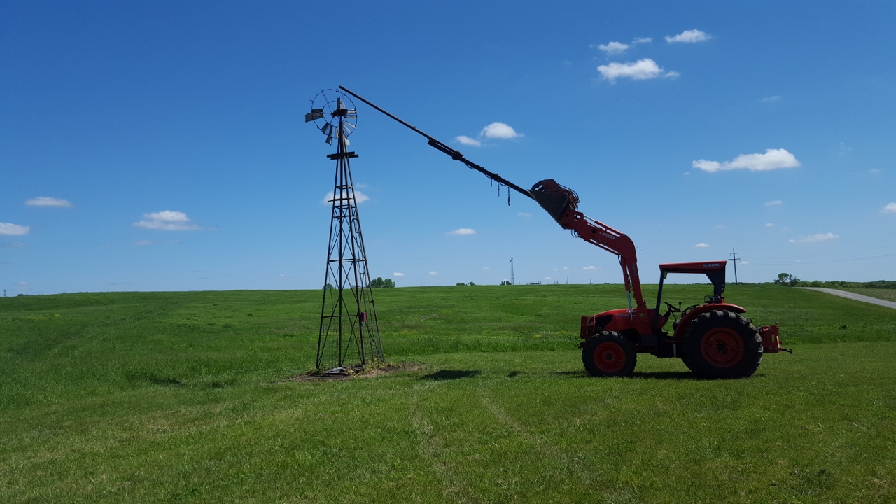 Cobbled up that setup to remove the head from that windmill. Worked like a champ. Had a bucket truck there so all I was lifting was the head and the workers were safely not on the tower. Pretty cool looking though huh!!!! :D