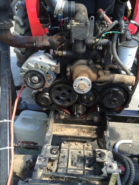 the cam gear bolt backed out which sheared off the key, somewhere in the pan is the other half of it, valves smacked the pistons not bad but enough to make me think to replace them, bent 2 valves #1 intake #2 exhaust, kinda weird but that is how it goes, all the push rods are bent, and no telling how the crack looks or rods at this point, did split the tractor and removed the front section,