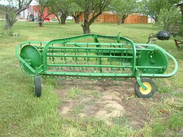 HOLY COW! That's all I can say about using my new rake (who thought someone could be excited about using a rake?). Anyway, I got the two dolly tires fixed (figured go ahead and get 'em both done now and be done with it) and raked some hay last night. I have never raked with a dolly wheel rake before - man, what a difference in handling! We raked about 5 acres with it pulled by my Yanmar F16d, and it did really well. It was also SOOOOO much quieter than the older rattle trap rake that we've used for years. It did a really good job picking up the hay, at least as good as it could, because it was the second cutting, pretty short hay, and it got rain on, so that really hurt.