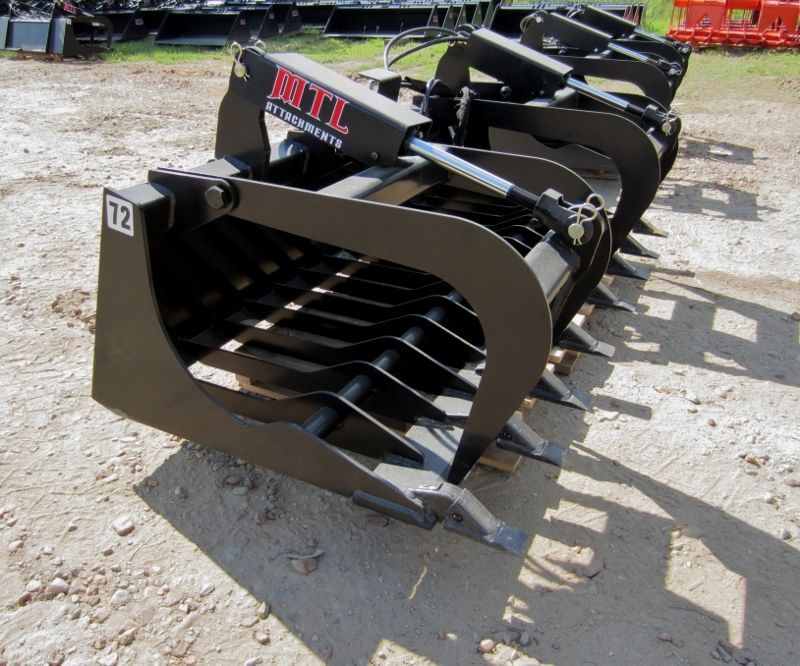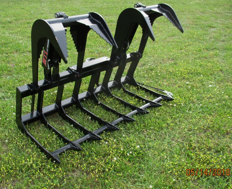 I have a "thumb" for my tractor and a grapple for my toolcat.. sometimes a picture is worth part of the explaining.. I got the thumb for the tractor as it didn't add much weight but you can see the amount of brush it can handle, works much better for smaller stuff and holding logs to cut but then you have to watch out not to hit the thumb or the bucket in the center areas with the saw.. the "L" grapple with two clams works much better for holding logs to cut (only have to watch out for the top clams and also can stuff way more brush into it (go vertical into pile and clamp down grabbing about everything). the double clams is the way to go you can grab one big rock, uneven Y branched logs, root balls you name it.. 20130914_174916945_iOS.jpg20160827_111118.jpg20160827_111128.jpg