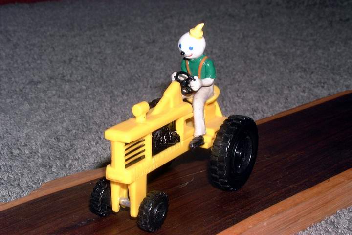 The 1st was a chain drive Ford pedal tractor; even had fake spark plug wires. The rear drive ran circles around the traction limited standard tricycle on the grass and the sand driveway, as well on the little old lady's sage broom maintained sand yard next door. Then a late 1951 side distributor 8N, then I purchased a new 750 John Deere in 87, then a 1925HST Boomer New Holland in 1997, which I still Have, but really should offer for sale. My latest is a Kubota B3030 cab model.